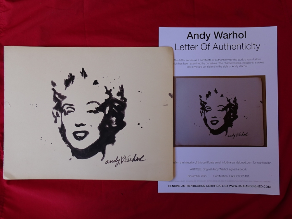 Andy Warhol, attributed, ink drawing Andy Warhol was an American visual artist, film director, and producer who was a leading figure in the visual art movement known as pop art. His works explore the relationship between artistic expression, advertising, and celebrity culture that flourished by the 1960s, and span a variety of media, including painting, silkscreening, photography, film, and sculpture. Some of his best-known works include the silkscreen paintings Campbell's Soup Cans (1962) and Marilyn Diptych (1962), the experimental films Empire (1964) and Chelsea Girls (1966), and the multimedia events known as the Exploding Plastic Inevitable (196667).