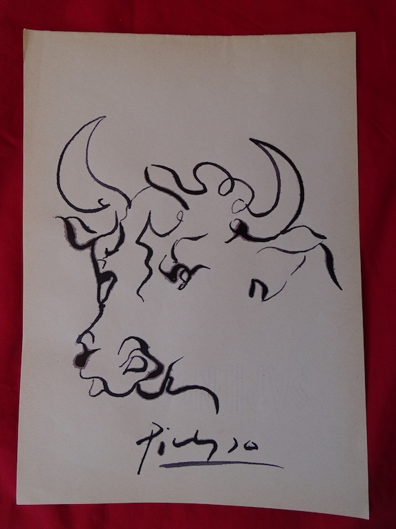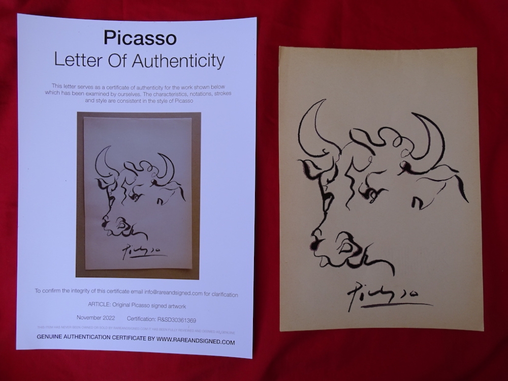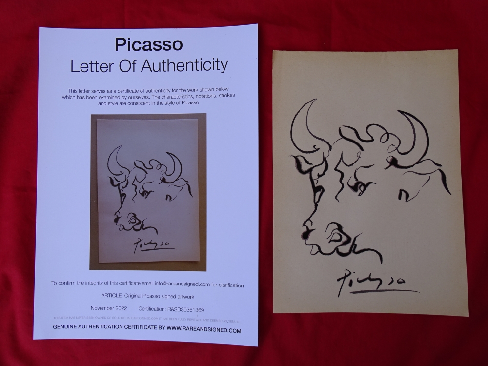 Pablo Picasso (attributed) ink drawing Very good condition Letter of authenticity includedPablo Ruiz Picasso[a][b] (25 October 1881 8 April 1973) was a Spanish painter, sculptor, printmaker, ceramicist and theatre designer who spent most of his adult life in France. Regarded as one of the most influential artists of the 20th century, he is known for co-founding the Cubist movement, the invention of constructed sculpture, the co-invention of collage, and for the wide variety of styles that he helped develop and explore. Among his most famous works are the proto-Cubist Les Demoiselles d'Avignon (1907), and the anti-war painting Guernica (1937), a dramatic portrayal of the bombing of Guernica by German and Italian air forces during the Spanish Civil War.
