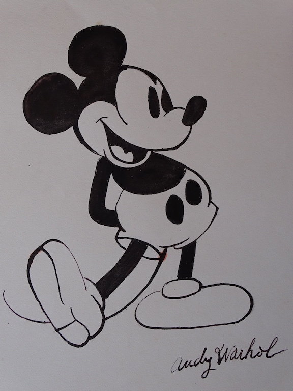 Andy Warhol, attributed, ink drawing Andy Warhol was an American visual artist, film director, and producer who was a leading figure in the visual art movement known as pop art. His works explore the relationship between artistic expression, advertising, and celebrity culture that flourished by the 1960s, and span a variety of media, including painting, silkscreening, photography, film, and sculpture. Some of his best-known works include the silkscreen paintings Campbell's Soup Cans (1962) and Marilyn Diptych (1962), the experimental films Empire (1964) and Chelsea Girls (1966), and the multimedia events known as the Exploding Plastic Inevitable (196667).