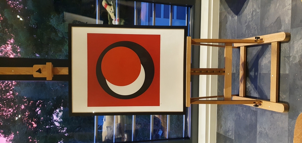 Beautiful composition by Geneviève Claisse (1935-2018) based on her original work 'Cercles' from 1968. The work is framed. Dimensions including frame: 84 x 65 cm. The work is signed and numbered 12/40.