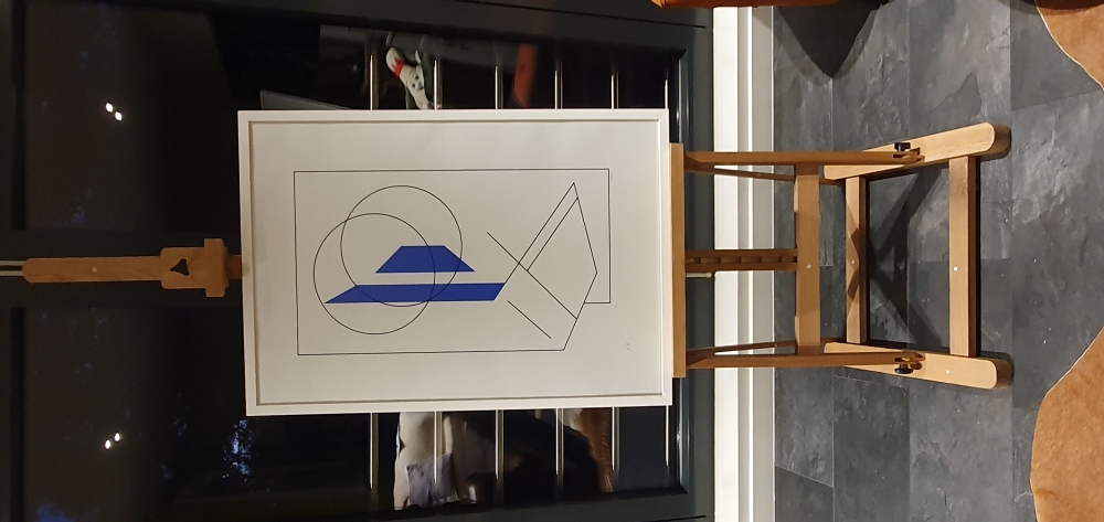 Beautiful composition by Geneviève Claisse (1935-2018) after her original work 'La boule bleue' from 1965. The work is framed. Dimensions including frame: 91 x 65 cm. The work is signed and with annotation and others (épreuve d'artiste). gcgcgcgcgcgcgcgcgcgc