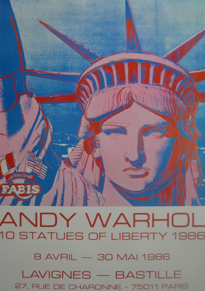 Beautiful poster of one of Warhol's last exhibition, April 8 - May 30, 1986 in Paris Warhol exhibited 10 different paintings of the Statue of Liberty. Copyright Andy Warhol. Offset Lithograph Dimensions: 100 cm x 70 cm Galerie Lavignes-Bastille-Paris In excellent condition. Never been framed. Will be shipped in a spacious tube.