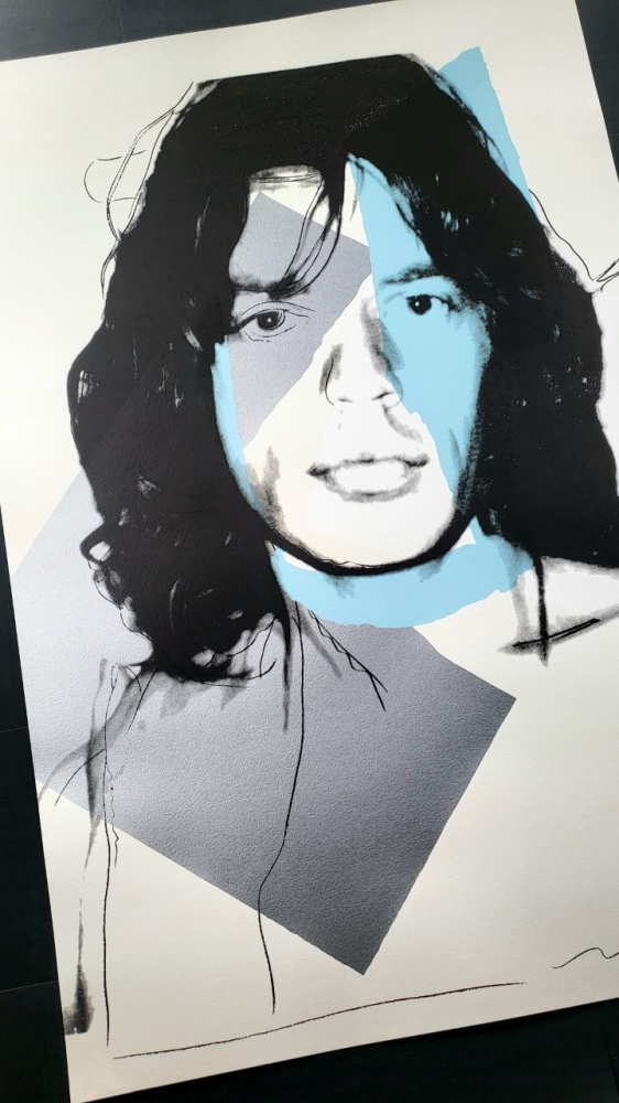 Andy Warhol - "Mick Jagger" - FS II #138 Screenprint in colors from the 1975 Jagger series From the portfolio of ten different screen prints on Arches Watercolor (Rough) paper This is an unsigned proof (outside the regular edition) Size: 43 1/2 inches X 29 inches (110.5 cm X 73.7 cm) Printer: Alexander Heinrici, New York, USA Publisher: Seabird Editions, London, England "Copyright SEABIRD EDITIONS" stamp on verso Mentioned in "a Catalog Raisonné 1962 - 1987" by Feldman / Schellmann In excellent condition, never framed Because of the beautiful colors and large dimensions, the work deserves a prominent place on the wall when framed Will be shipped insured and with track and trace