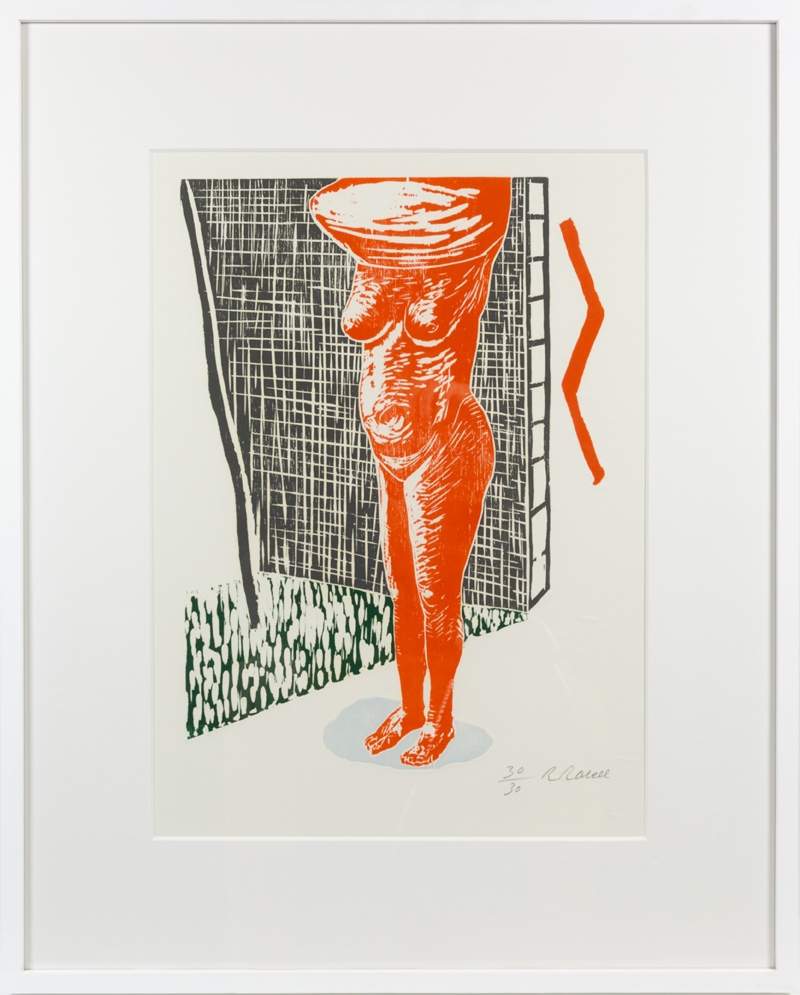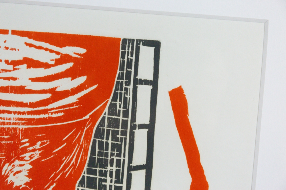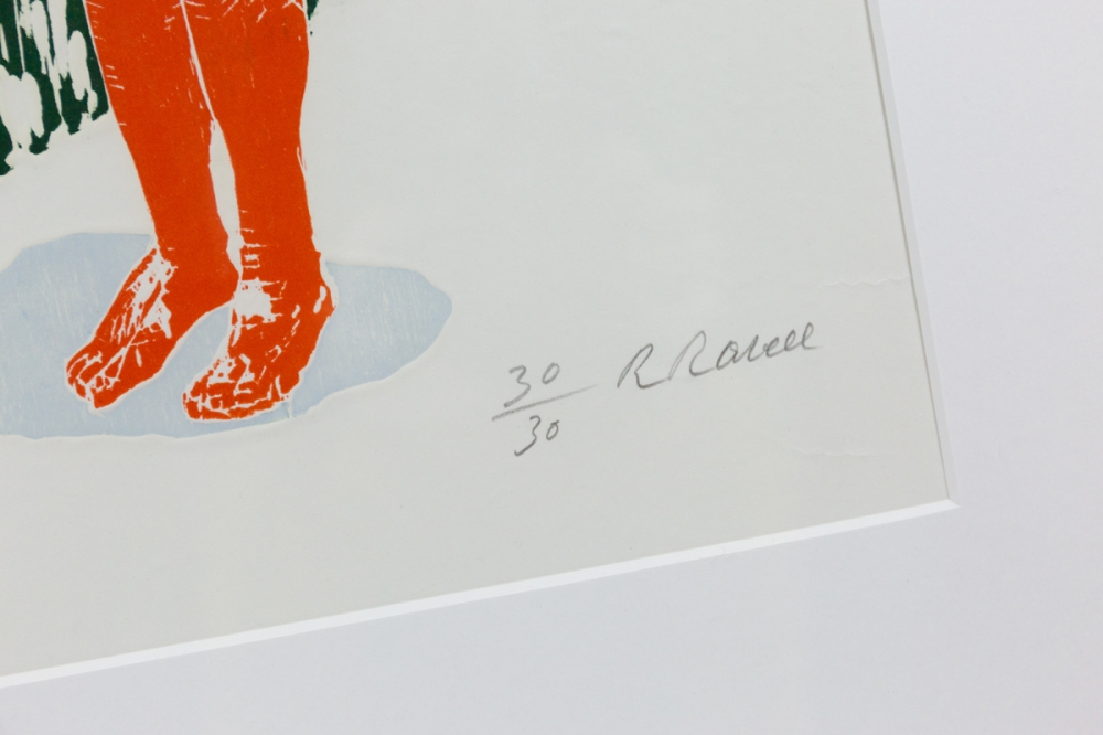 Een kleurenhoutsnede van Roger Raveel, met de hand gesigneerd en genummerd op 30 exemplaren, waarvan dit het 30e is. Het werk is uitzonderlijk om dat dit gemaakt is op Japans papier.