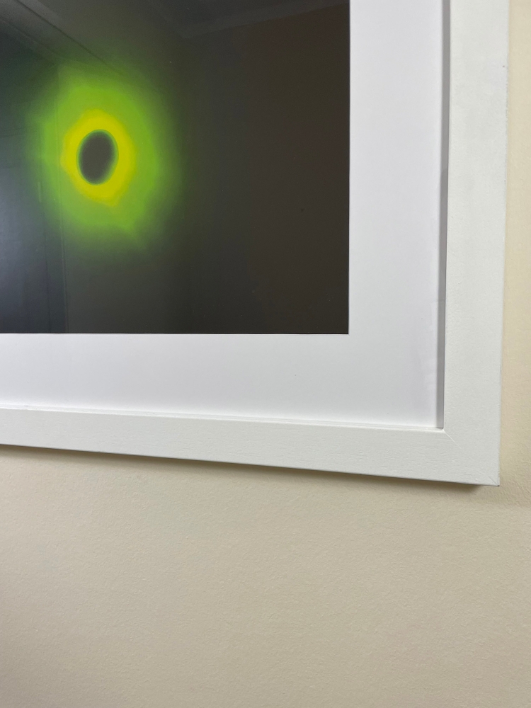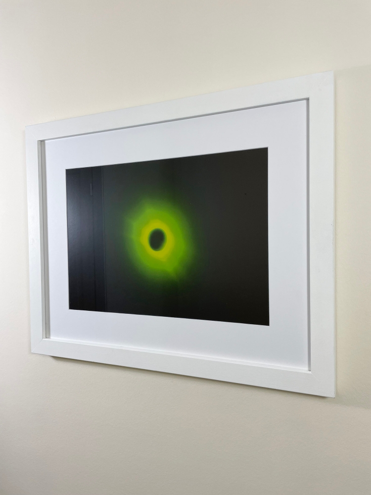 Framed photo lithograph of solar eclipse by Ann Veronica Janssens from 2013. This work is made in a series of 4 and all four are offered separately. The work is hand-numbered by the artist (see photo). Ann Veronica Janssens (B, 1956) is an international sculptor of light, sound and space. Ann Veronica Janssens almost always works in a minimal way without really belonging to minimal art. However, the fact that her work is sometimes associated with the minimalist movement is due to the clear design and choice of materials: transparent, glossy or, conversely, condensed and seemingly inaccessible. The artist lives and works in Brussels. The photo is from the series 'Museum to scale' published by gallerist Ronny Van de Velde. The whole will be professionally packed and shipped.