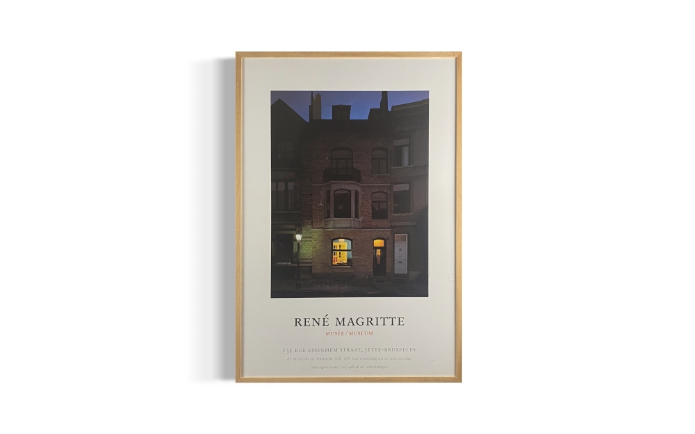 Originele affiche Musée Magritte, professioneel ingelijst in eiken kader. Groot formaat: 103x72 cm. Enkel ophaling mogelijk. René Magritte was een Belgische surrealistische kunstenaar. Hij schilderde alledaagse objecten in ongewone contexten. Magritte's werk verkende de relatie tussen realiteit en illusie.