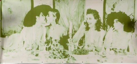 “Woman at dinner” by Mark Lagrange photographic print on canvas. Signed lower right Marc Lagrange and dated (19)99. 120 x 260 cm