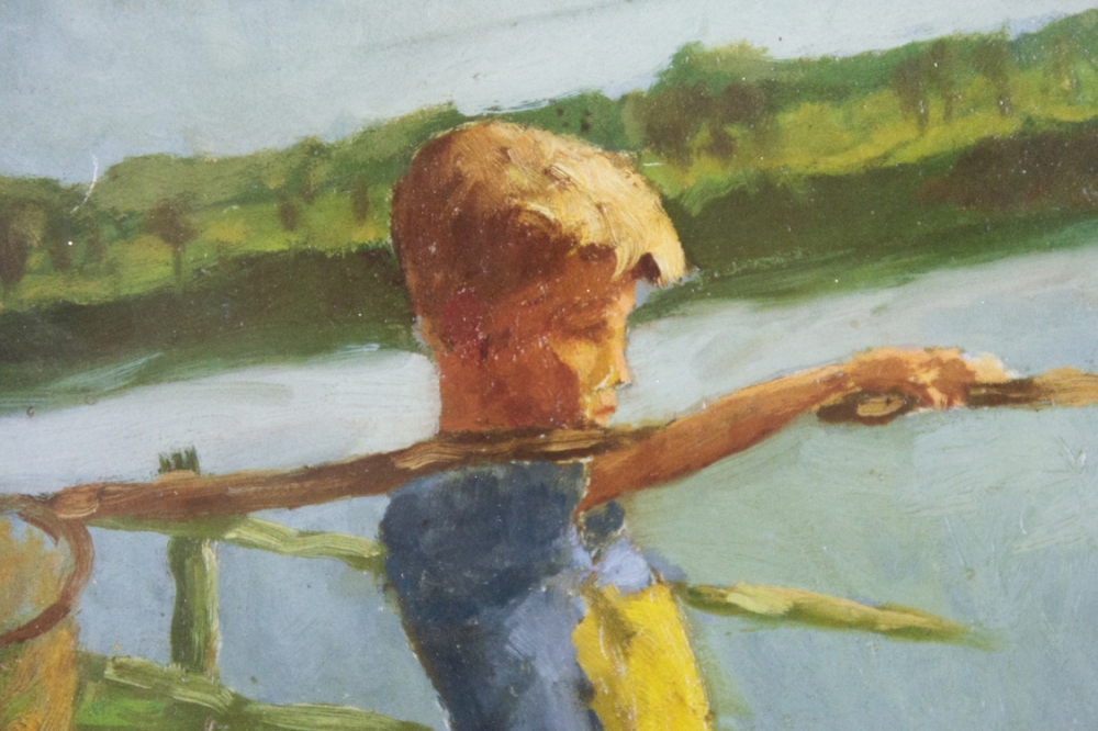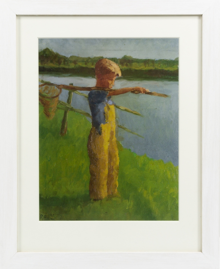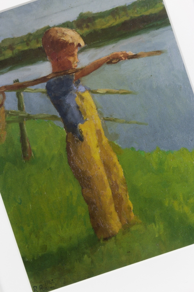 Offsetreproductie van Roger Raveel's - Aan de Leie uit 1942, de vroege periode van Raveel dus. Een leuk en minder bekend beeld.