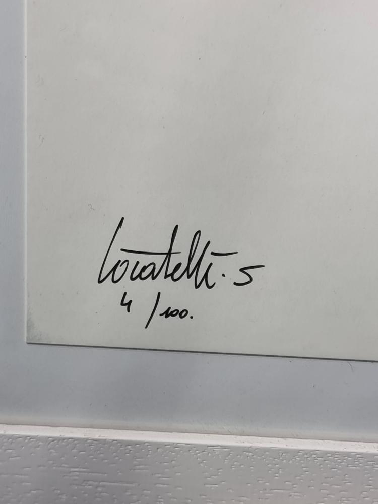 Prachtig vroeg werk van Steve Locatelli. Groot formaat. In de gzochte kleur "goud". Goudkleurige diepdruk op wit stevig papier (300g) waardoor het werk met verschillende licht-invalshoeken er steeds net ieders anders uit (goud/zwart) ziet en blijft verrassen. Het werk is gesigneerd en genummerd. Editie op 100 exemplaren, het aangeboden nummer is 4.