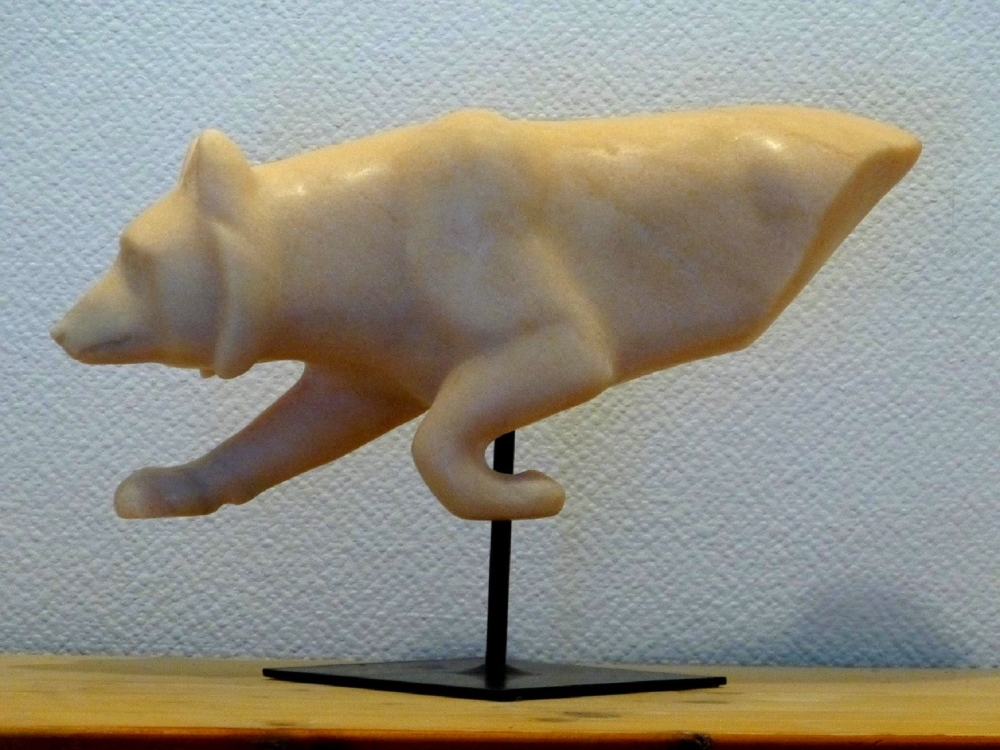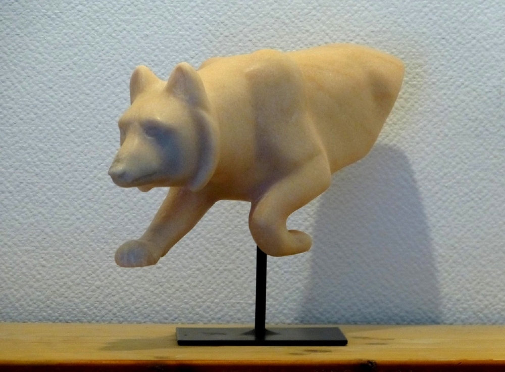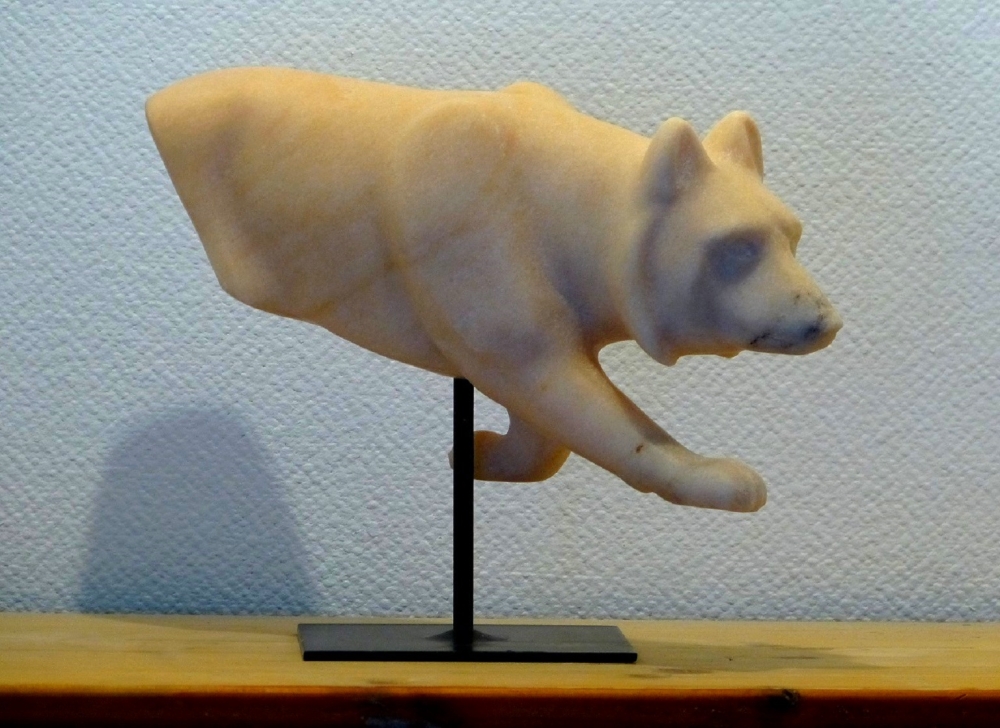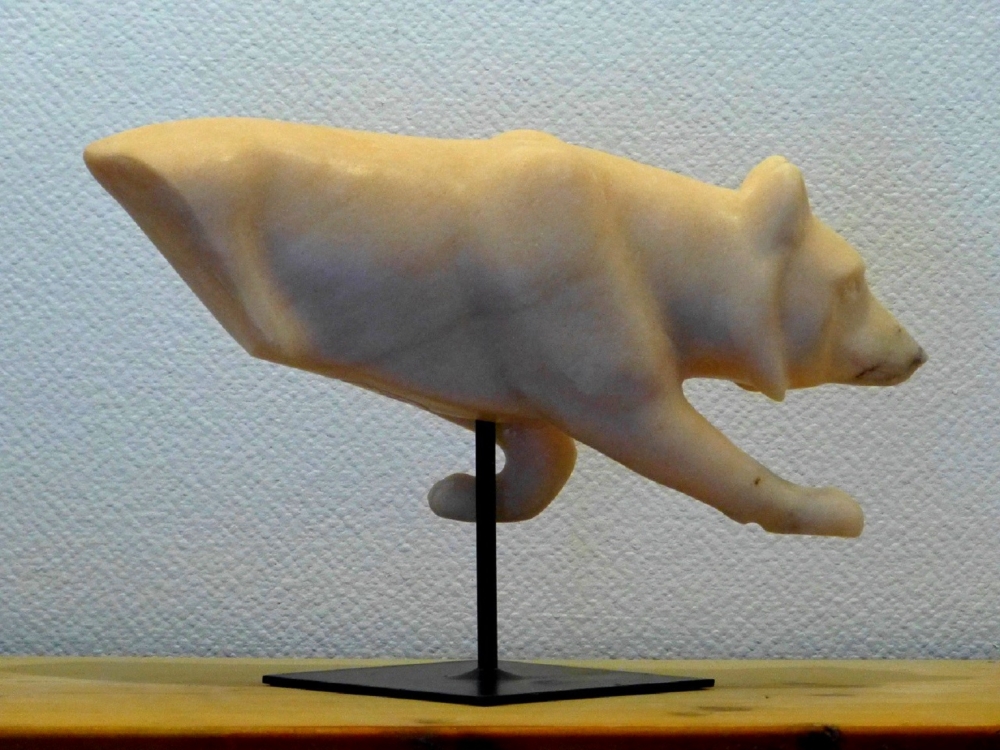 Statuette réalisée dans un bloc de marbre rose du Portugal. Sculptée manuellement dans mon atelier à Mougins. Pièce unique neuve. Socle en fer noir (12/12/12cm). Certificat d'authenticité signé par l'artiste.