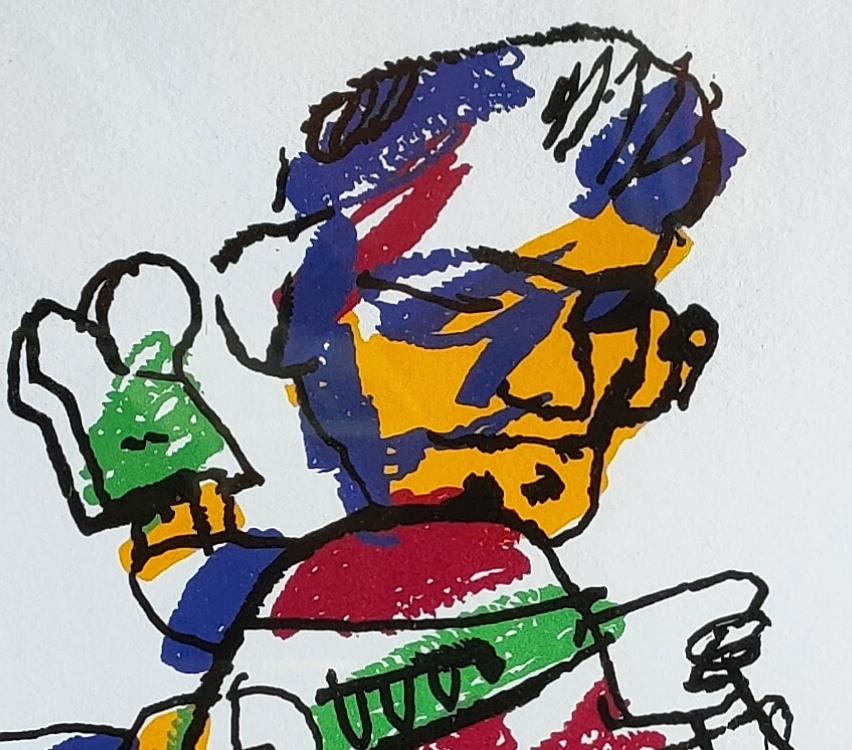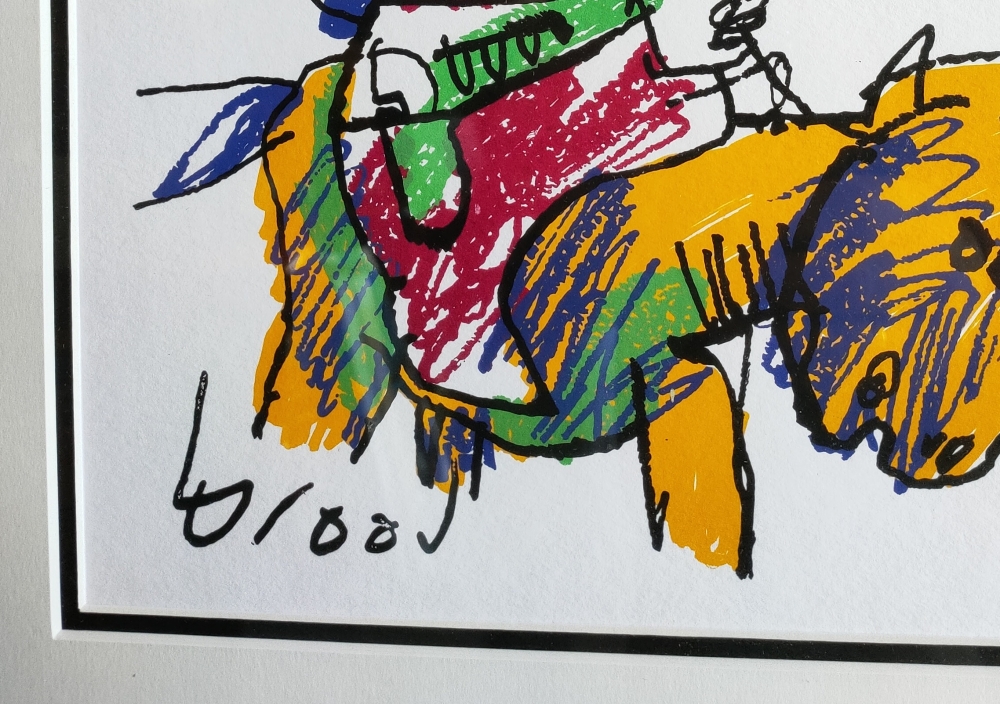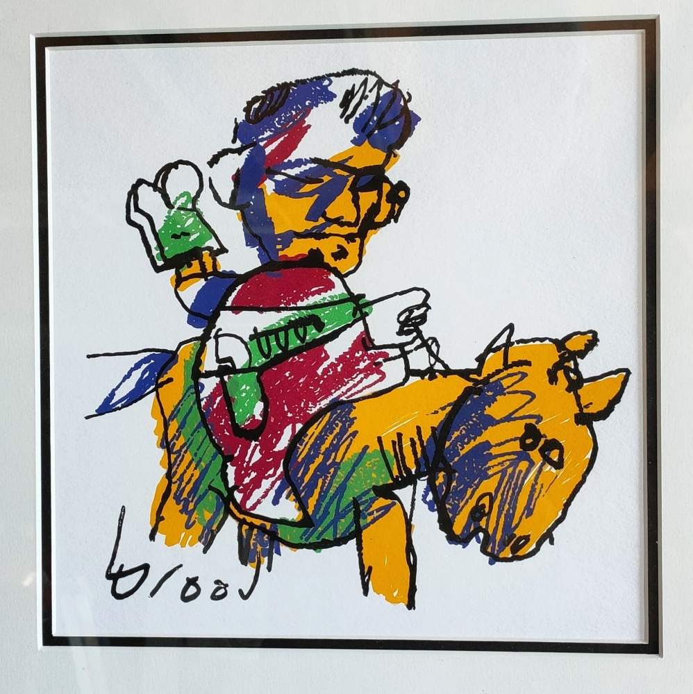 hiermede een allerleukst zeefdruk , met een spreuk , die de glimlach op je gezicht tovert, kaar om op te hangen , in Uw kamer nu direct , het is bijna op , deze serie van Herman BROOD ook dit werk is bijn uitverkocht