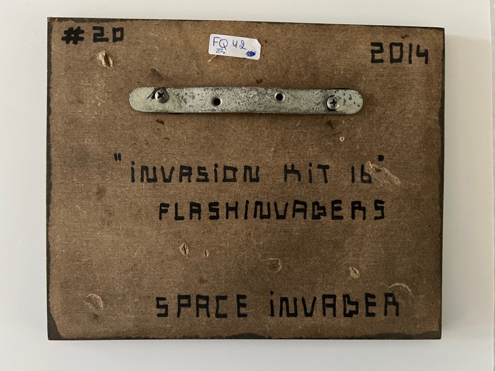 INVADER | INVASION KIT #16 FLASHINVADERS The Invader Invasion kit is comprised of 80 ceramic tiles Having invaded more than 60 cities, exhibited in the most prestigious galleries and recently sending one of his signature mosaic artworks aboard the International Space Station, Invader, is without doubt one of the most powerful street artists in the world. Invader takes inspiration from the iconic Space Invader game and debates the juxtaposition of the innocuous video game within an often-dangerous street context.