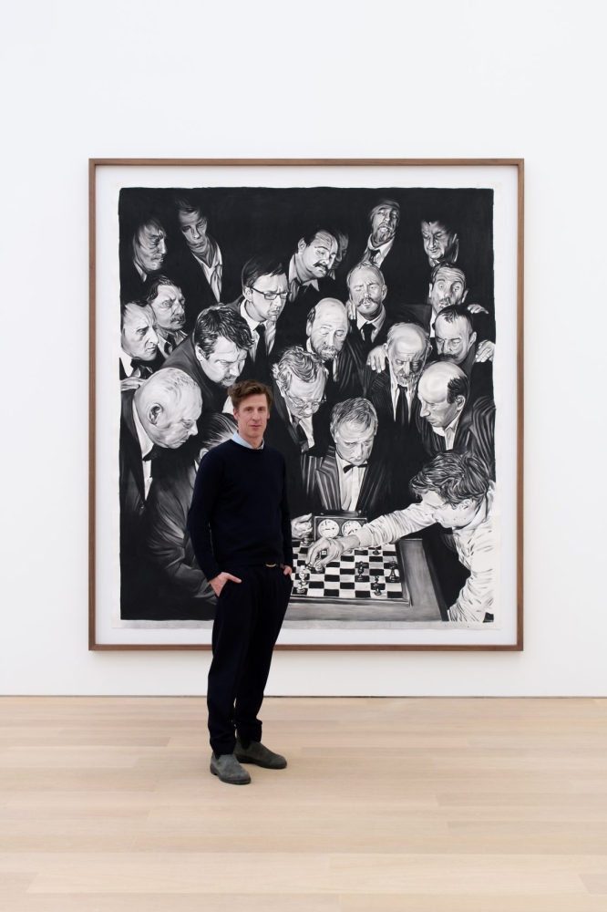 Poster (limited edition, groot formaat) naar een origineel werk van Rinus Van de Velde, deze uitgave is niet meer te verkrijgen. Collectors item. Rinus Van de Velde werd bekend danzij zijn monumentale houtskooltekeningen. Zijn zwart-wit tekeningen doen vaak denken aan stills uit de film noir en worden gekenmerkt door de filmische kwalieit, opvallende schaduwwerking en grote contrasten. Deze poster van untitled, 2012 door Rinus Van de Velde (1983) werd speciaal voor zijn tentoonstelling The Armchair Voyager - in Voorlinden gemaakt.