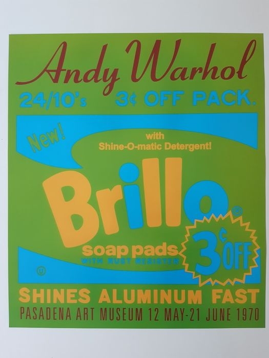 Andy Warhol - Brillo Soap Pads - Poster - Stamped Signature (#0328) Lithographic on glossy light paper. Edited by Pasadena Museum Of Art for the Andy Warhol Exhibition held from May 12 to June 31 1970. Size: 76x66cm and in a good condition Photos are part of the description, see pictures to judge by yourself its overall condition. Be safely packaged and sent worldwide