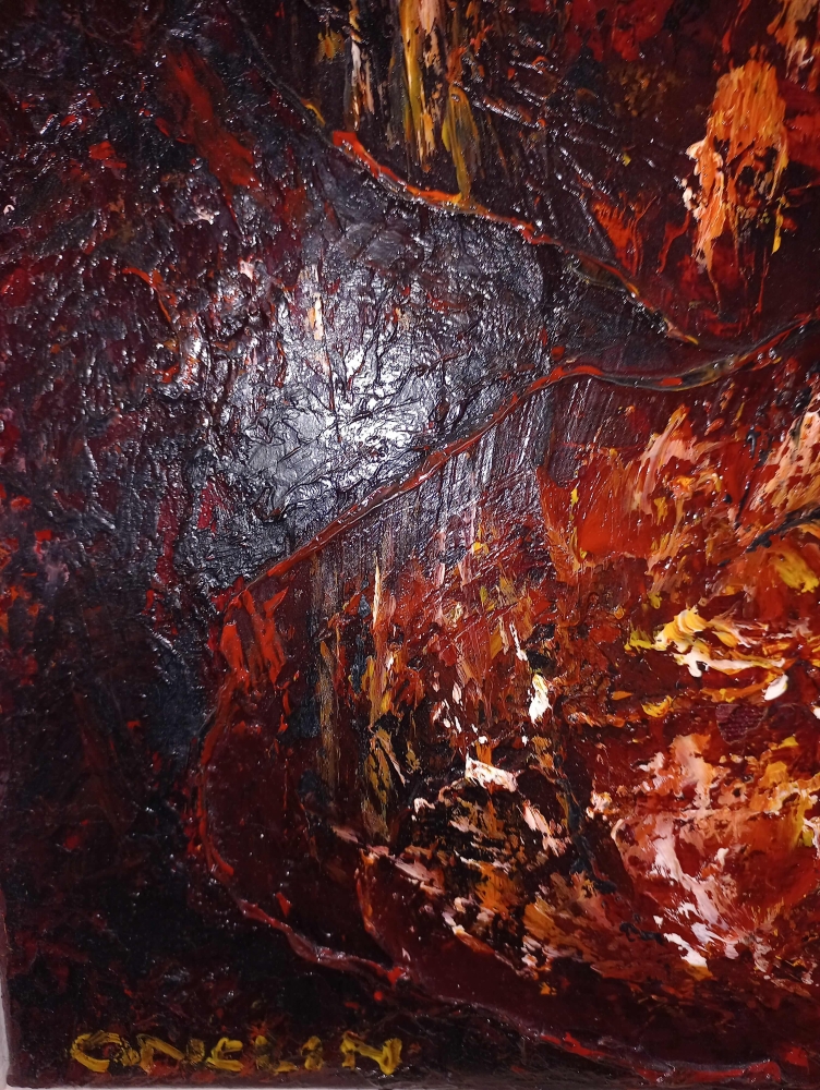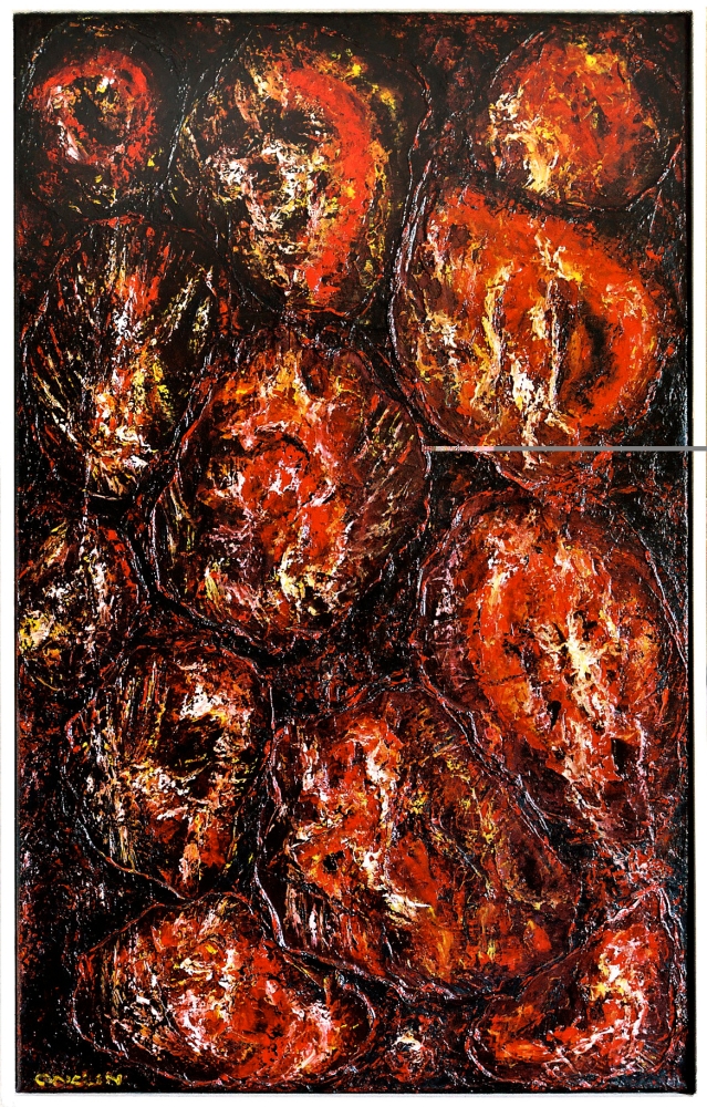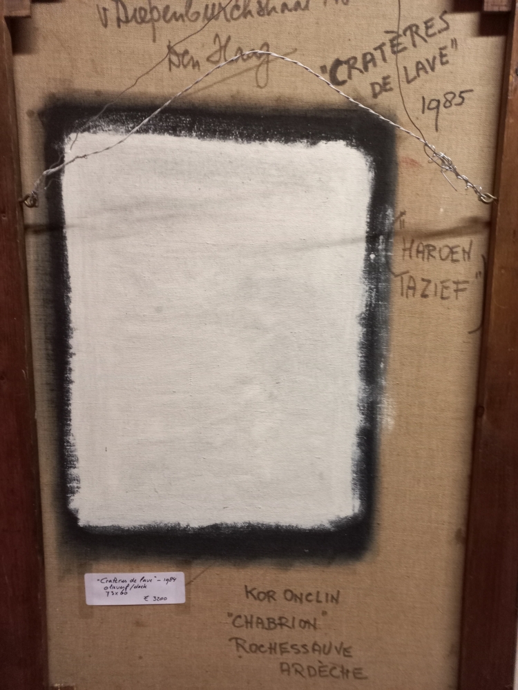 Olieverf op doek Kor Onclin (Leeuwarden 1918 - Twello 2003), kunstschilder werkzaam in o.a. Frankrijk (Ardeche) 1978-2002 Titel: Cratères de lave, 1984 Gesigneerd: rechtsonder: "ONCLIN" Houten lijst Afmetingen: ca. 65 hoog, 50 breed Conditie: uitstekend Foto's maken deel uit van de omschrijving Informatie: www.koronclin.com Werk kan worden opgehaald in Klarenbeek (Nederland)
