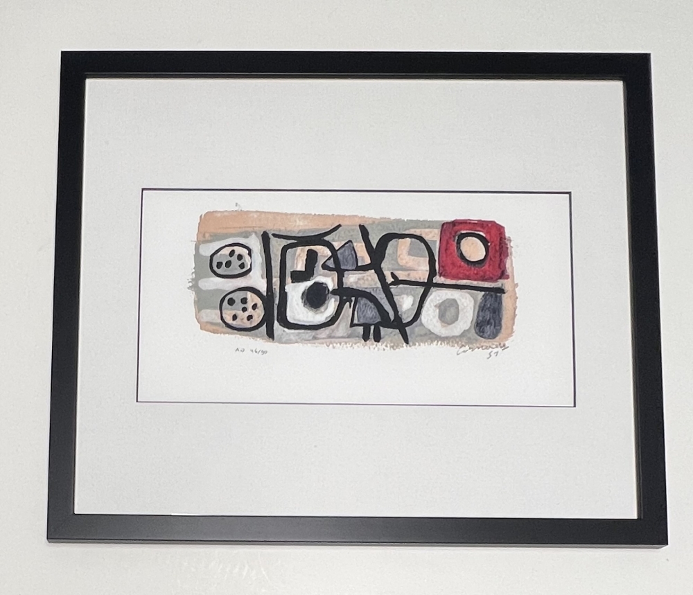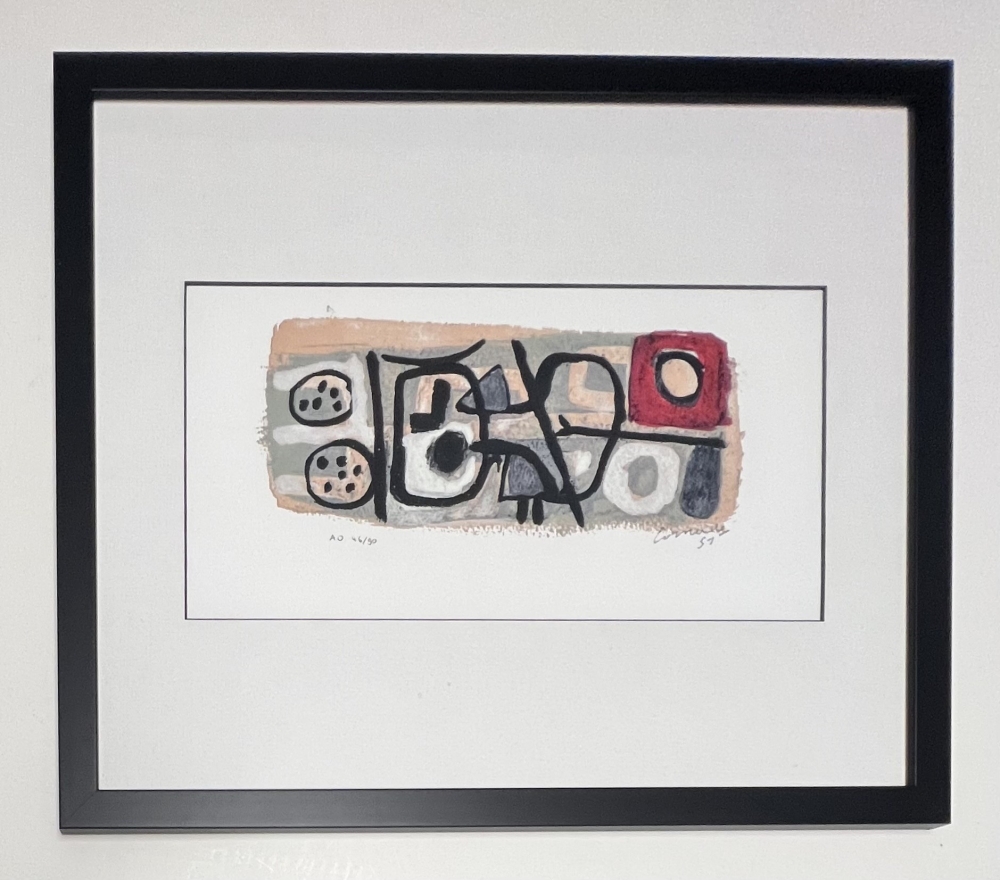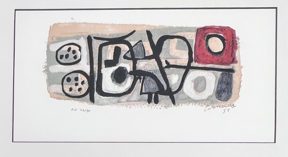 Beautiful framed Cobra work by Guillaume Corneille signed in the plate, made in homage to Charlie Parker:" April in Paris", 1951. Corneille discovered jazz when he arrived in Paris in 1951 in the cabarets of the capital. With Hugo Claus, he had the idea of working around this music. Authorised print run of 90 copies from the original "April in Paris" silkscreen - Schana B Editions / Guillaume Corneille Official Archives - Stamp on the back of the image - Natural pigments on Belgian hemp paper. Numbered edition. Dry stamp of the editions We sell here the numbered copy AO 46/90 - Off-centering of the image imagined by Corneille suggesting the arrhythmia of Jazz. The painter created a total of 8 works in the series "April in Paris" in 1951. Size with frame : 39 x 46 cm Perfect condition.