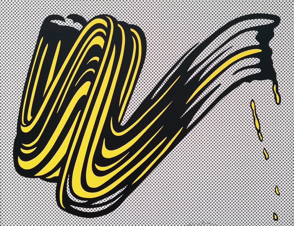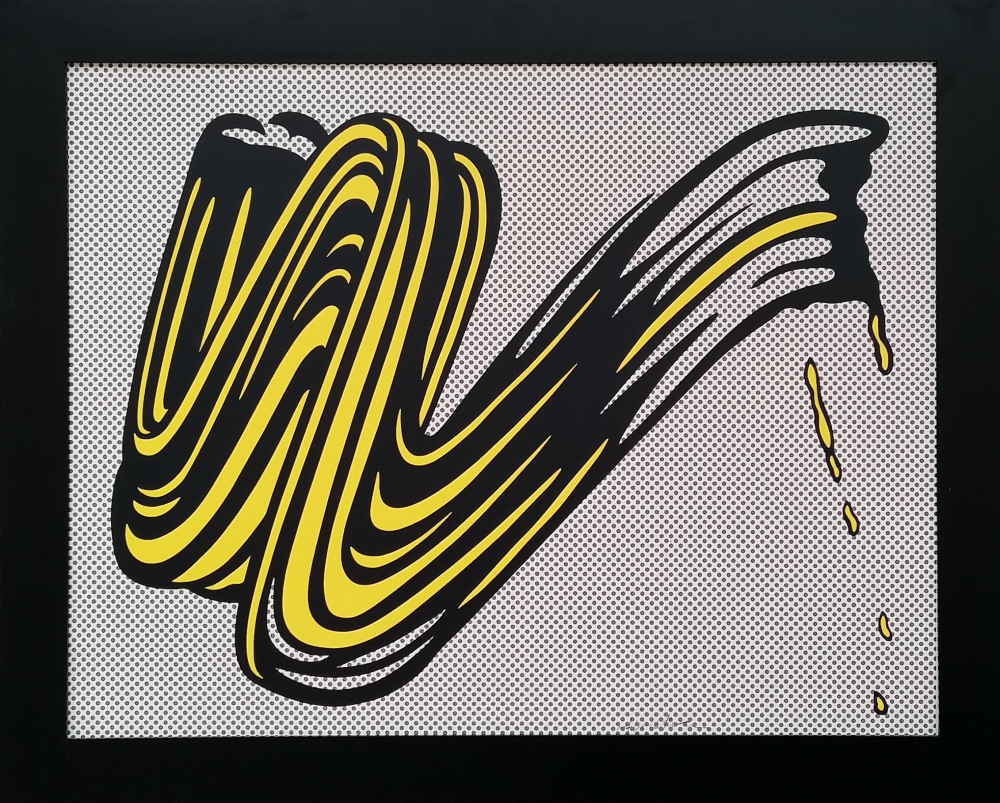 Roy Lichtenstein (1923-1997) Omschrijving : Brushstroke, 1965 Techniek : Druk op papier Afmetingen : 58 x 73 cm Signatuur : Gesigneerd rechts onder Herkomst : Privé collectie Atlanta GA met op de achterkant een sticker uit New York. In goede staat, met kader ; 75 x 90 cm