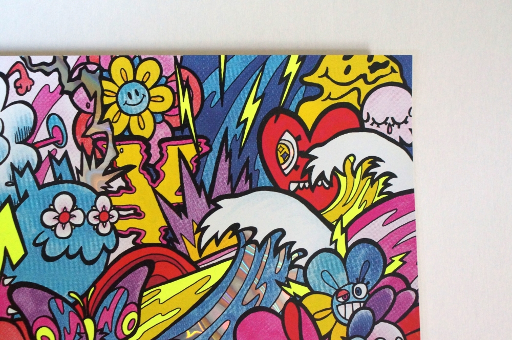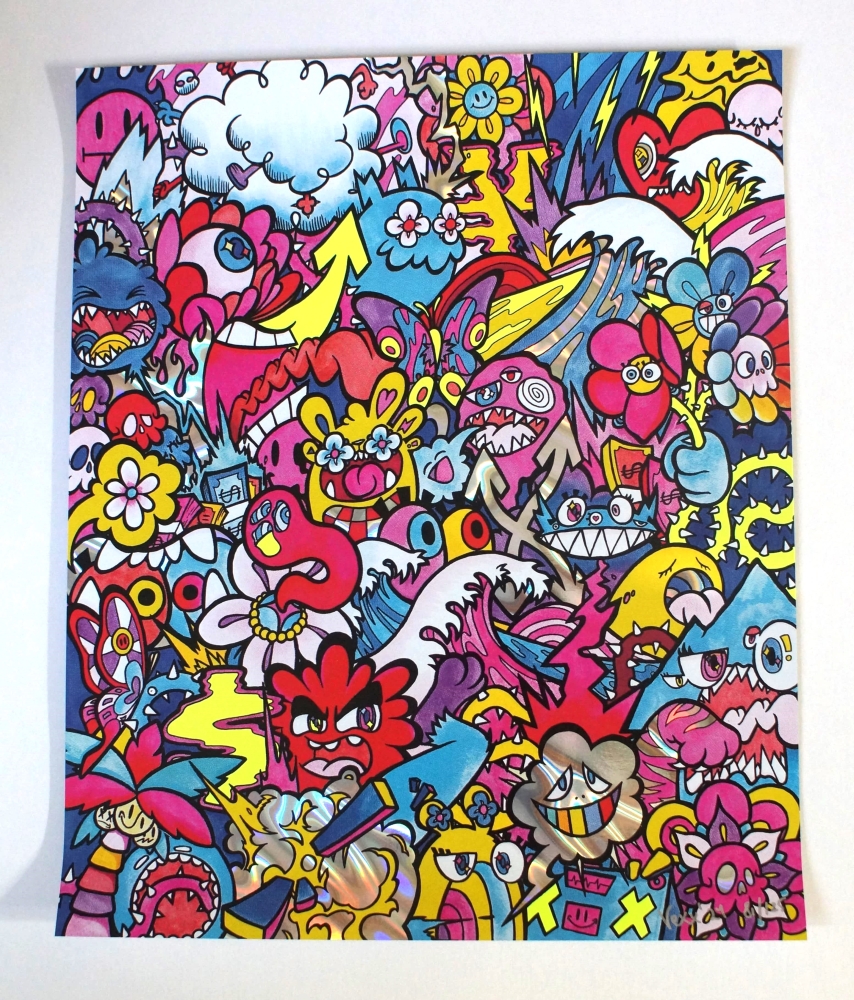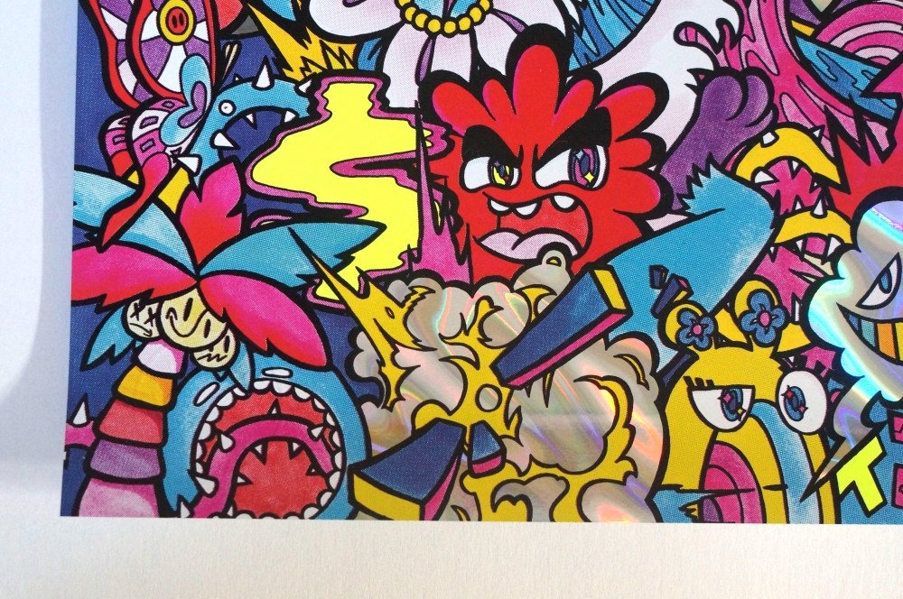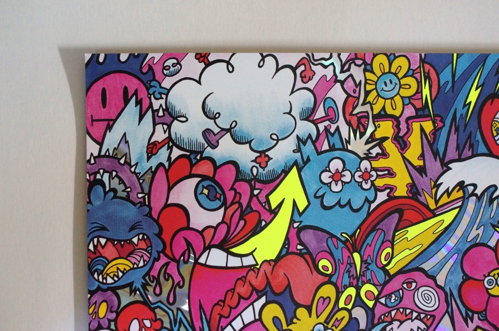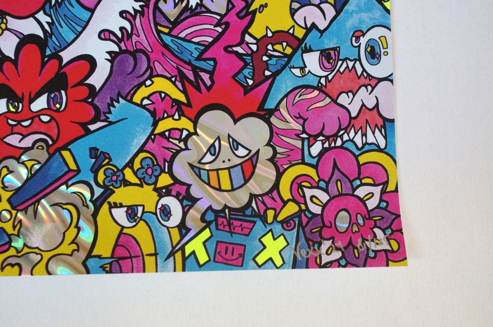 A beautiful screenprint by Vexx (Vince Okerman), issued on 125 copies. This is number 81/125, it is signed in the lower right corner. The print consists of 8 colors, spot varnish and yellow fluorescent ink + lava holographic effect, this creates a unique effect. Dimensions 41x50 centimeters.
