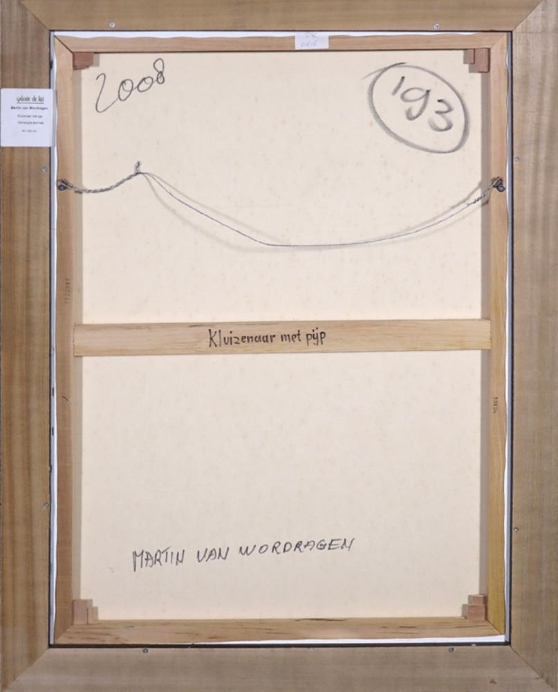 Zeer mooi werk van de Nederlandse kunstenaar Martin Van Wordragen. Het werk heeft als titel Kluizenaar met pijp het is handgesigneerd en professioneel ingekaderd. Met kader meet het werk 90 cm hoog en 70 cm breed. Het wordt geleverd met oeuvrecatalogus en certificaat van echtheid