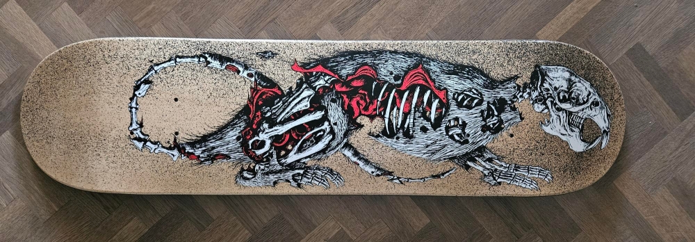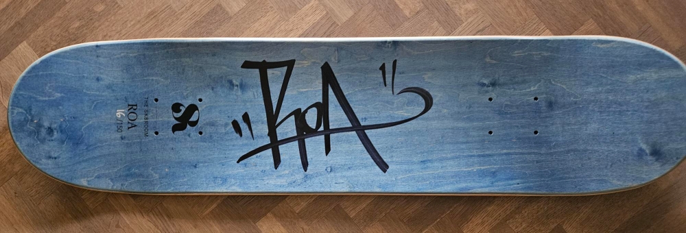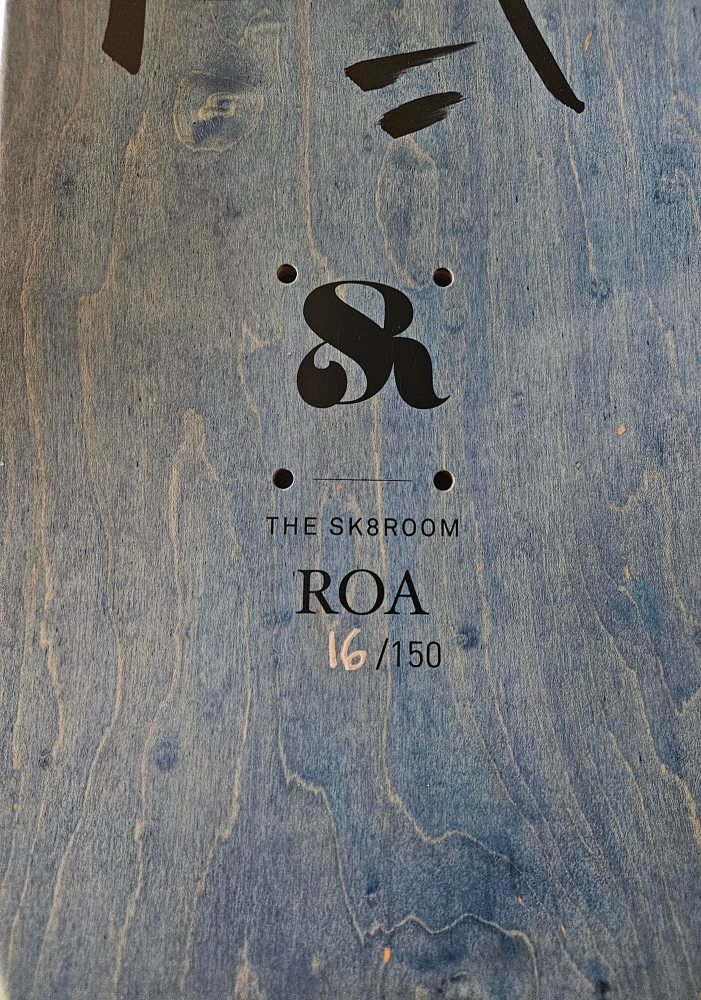 Limited Edition of 150 (number 1-25 signed / number 26- 150 not signed) The item offered is SIGNED (rare!) Produced and numbered by THE SKATEROOM in 2012 Made of 7 ply Grade A Canadian Maple wood ROAs Decay series represents a cornerstone in the artists work as his obsession with animals leads him to explore the anatomy of his creatures, as well as the biological process of decomposition, very much like a modern day da Vinci. Belgian-born street artist ROA is a muralist and artist renowned for his giant black and white animals that can be found in every major cities of the world. ROA was recently selected to feature in Art in the Streets, the first exhibition dedicated to graffiti and street art at the MOCA, which brought together the top 50 street artists of all times.