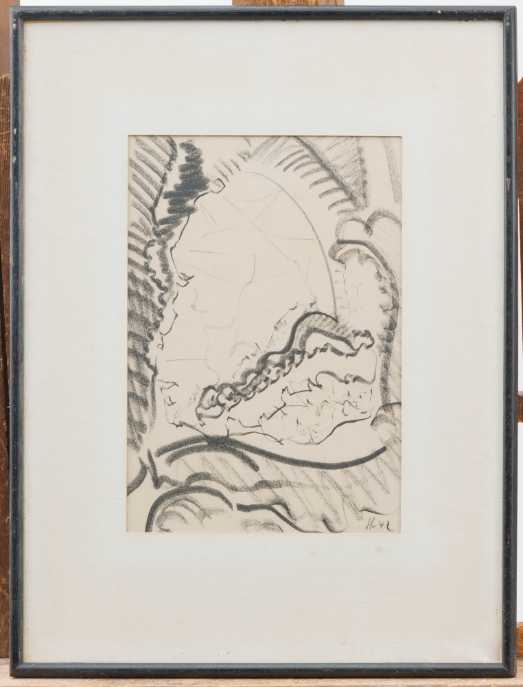 Zonder titel. Zwart potlood. Gemonogrammeerd en gedateerd 'VS 42'. Kader. Afmetingen: 270 x 210 mm (450 x 385 mm) Victor Désiré Servranckx was een Belgisch abstract werkende kunstenaar, een pionier van de avant-gardekunst in België. Hij is een van de weinige kunstenaars in België die de abstracte kunst heeft beoefend tot aan zijn dood