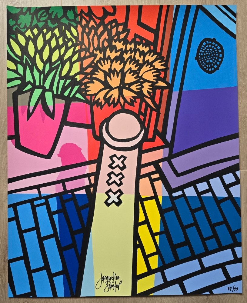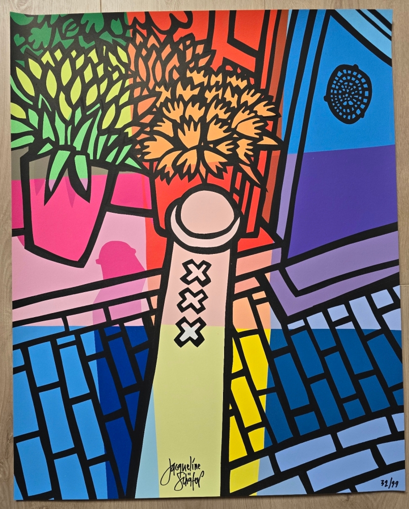 Handgesigneerde zeefdruk van Jacqueline Schafer Afmeting blad:70 x 56 cm Oplage: 99 ex. Het oplagenummer op de foto kan afwijken van het verkochte. Als wij meerdere exemplaren hebben in gelijke conditie maken wij niet voor elk blad een nieuwe foto. Wordt zeer zorgvuldig verpakt en aangetekend/verzekerd verzonden!