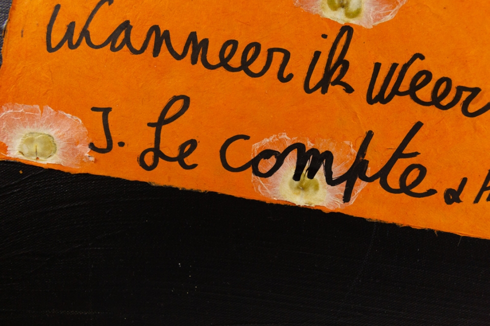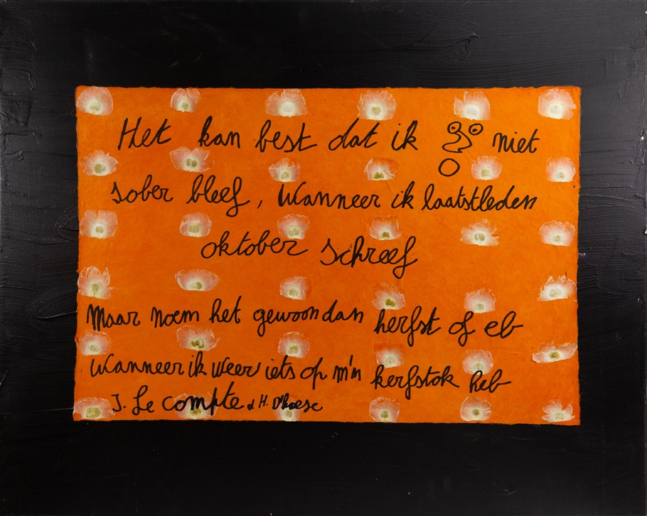 Schilderij met acrylverf van Hannes D'Haese. Het schilderij is een collage waarbij een vel papier op een zwarte achtergrond canvas gekleefd werd. Het gedicht werd gemaakt door de broer van Hannes D'Haese het schilderij werd gemaakt door Hannes D'Haese zelf. Wordt afgeleverd met certificaat van HannesDhaeseShop.