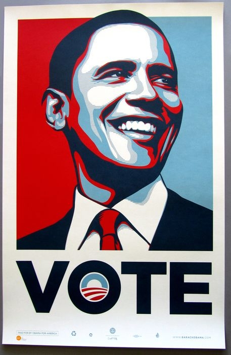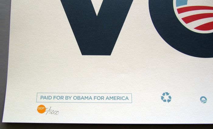 Shepard Fairey creëerde deze afdruk ter ondersteuning van de verkiezingscampagne van Obama in 2008. Het gaat hier om de gelimiteerde editie (5000 stuks) op groot formaat, niet te verwarren met de kleine niet gelimiteerde reeks.
