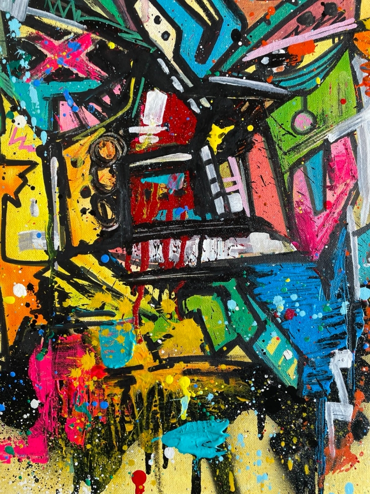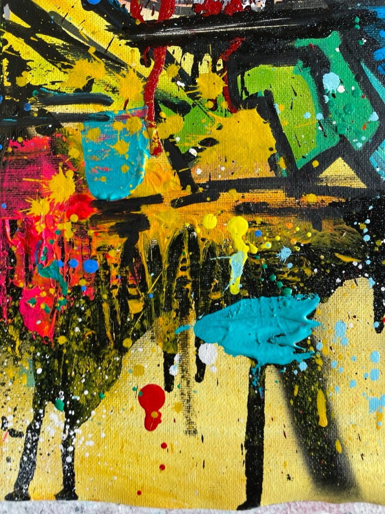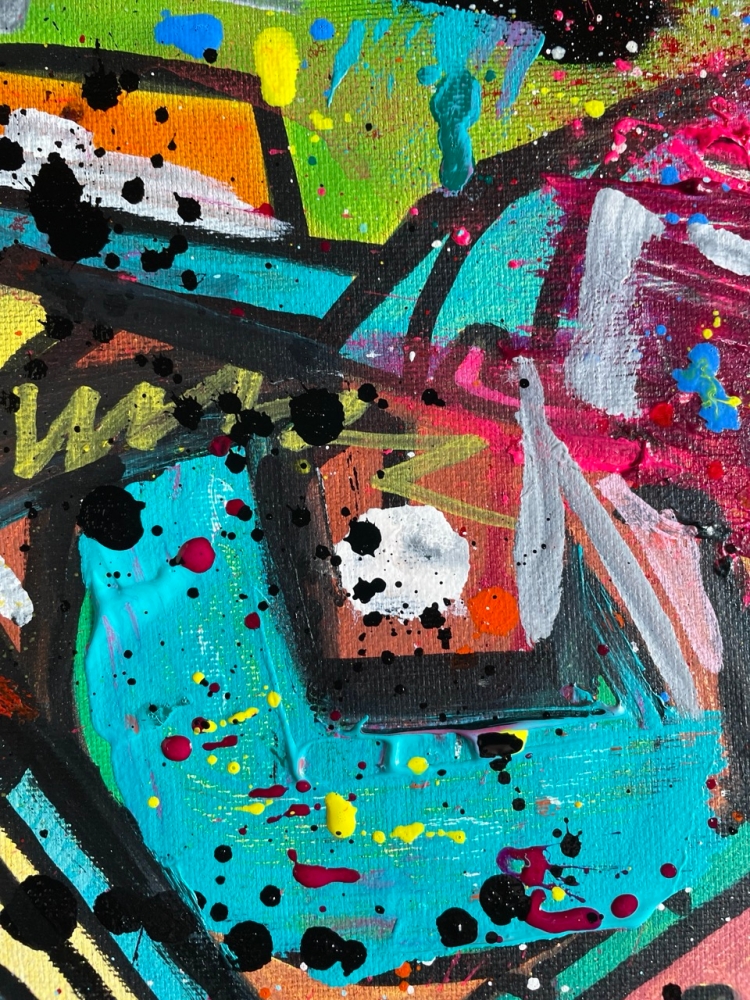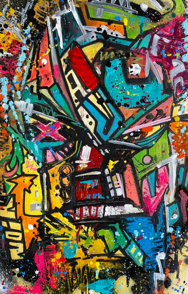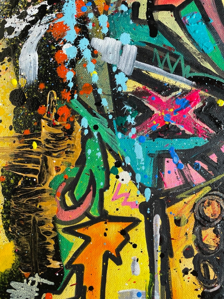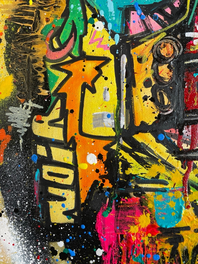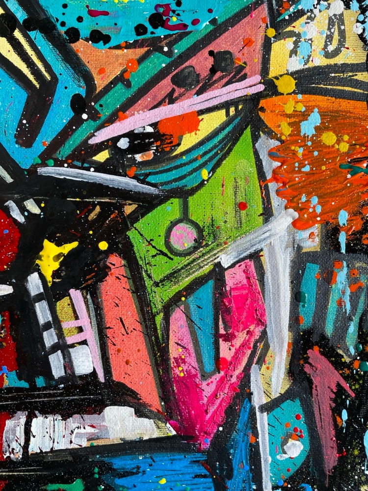 COLLECTOR'S ITEM! "Mr Syriuz Angover" Introducing an exceptional interpretation of this Noir's piece, this artwork is a mixed media on canvas titled "Mr Syriuz Angover" This exclusive edition highlights the artist's passion In every stroke, Noir's work reflects an unwavering commitment to the art form. -This is a unique work of art, hand-signed and with a certificate of authenticity, delivered to your door. -Sent rolled in a tube. -This is a Mixed Media Artwork on canvas, so you should expect some flaws, imperfections splatters, small cracks or wrinkles can also happen, and when it does, it's part of the artwork. This is just the nature of the spray on canvas. -Sent rolled in a tube. -Colors may shift due light conditions at the moment of the photo. *do not leave it in the tube Noir, a passionate artist, discovered her deep-seated love for Urban art and Illustration from a tender age. Over the years, Noir's artistic journey has unfurled, expanding the skills into various creative realms, including concept art and digital painting, music, 3d sculpt and traditional painting.