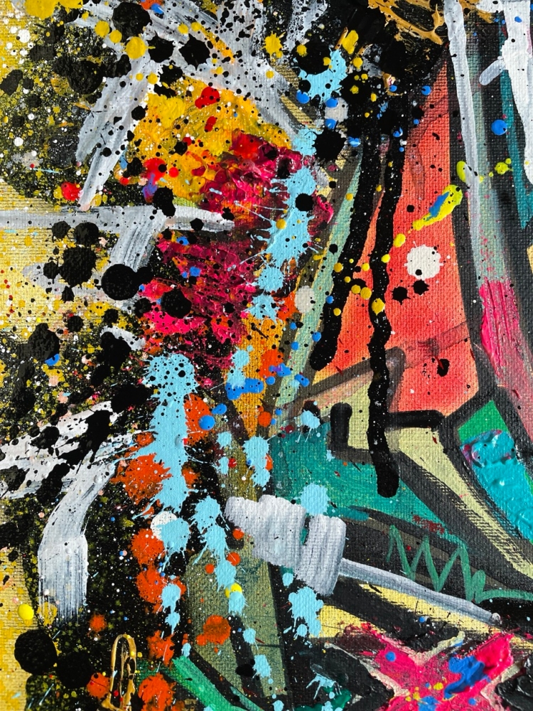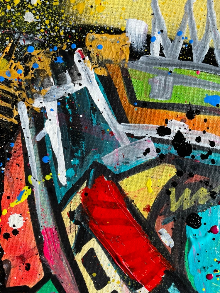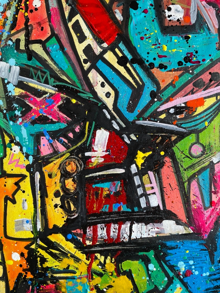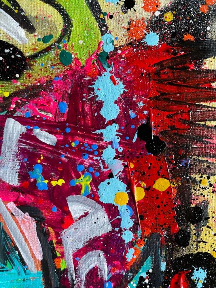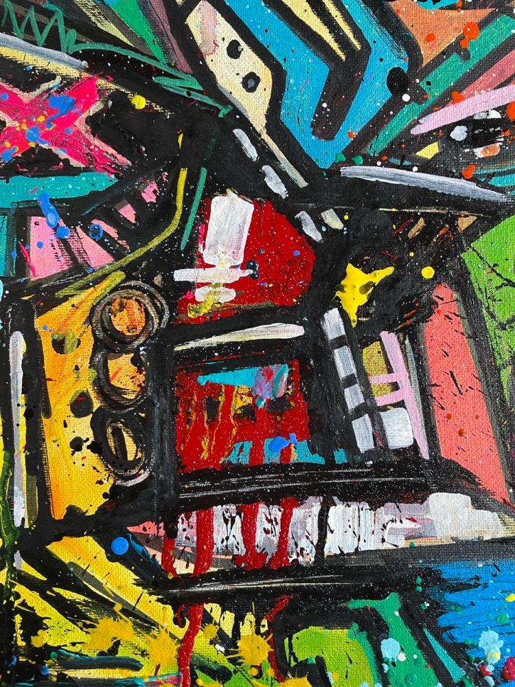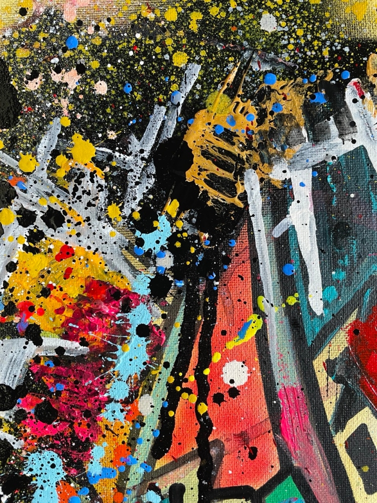 COLLECTOR'S ITEM! "Mr Syriuz Angover" Introducing an exceptional interpretation of this Noir's piece, this artwork is a mixed media on canvas titled "Mr Syriuz Angover" This exclusive edition highlights the artist's passion In every stroke, Noir's work reflects an unwavering commitment to the art form. -This is a unique work of art, hand-signed and with a certificate of authenticity, delivered to your door. -Sent rolled in a tube. -This is a Mixed Media Artwork on canvas, so you should expect some flaws, imperfections splatters, small cracks or wrinkles can also happen, and when it does, it's part of the artwork. This is just the nature of the spray on canvas. -Sent rolled in a tube. -Colors may shift due light conditions at the moment of the photo. *do not leave it in the tube Noir, a passionate artist, discovered her deep-seated love for Urban art and Illustration from a tender age. Over the years, Noir's artistic journey has unfurled, expanding the skills into various creative realms, including concept art and digital painting, music, 3d sculpt and traditional painting.