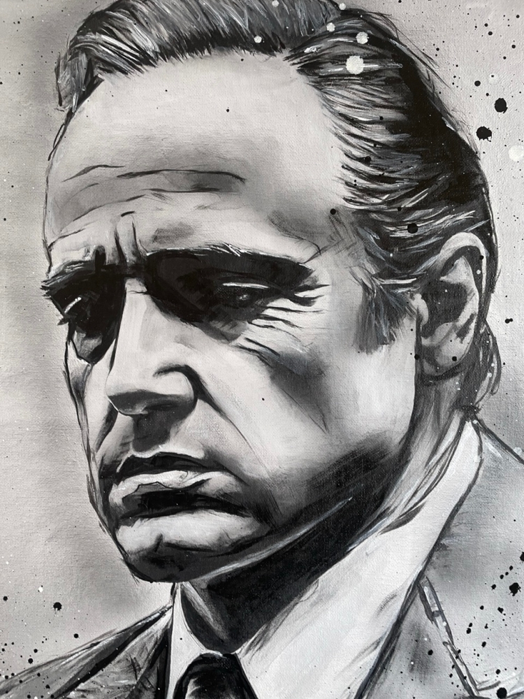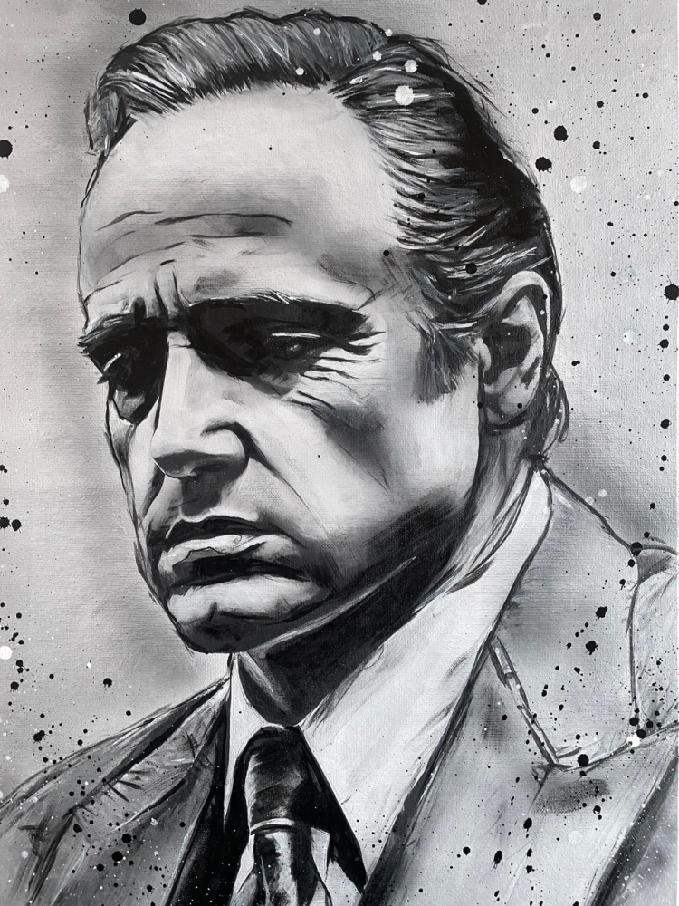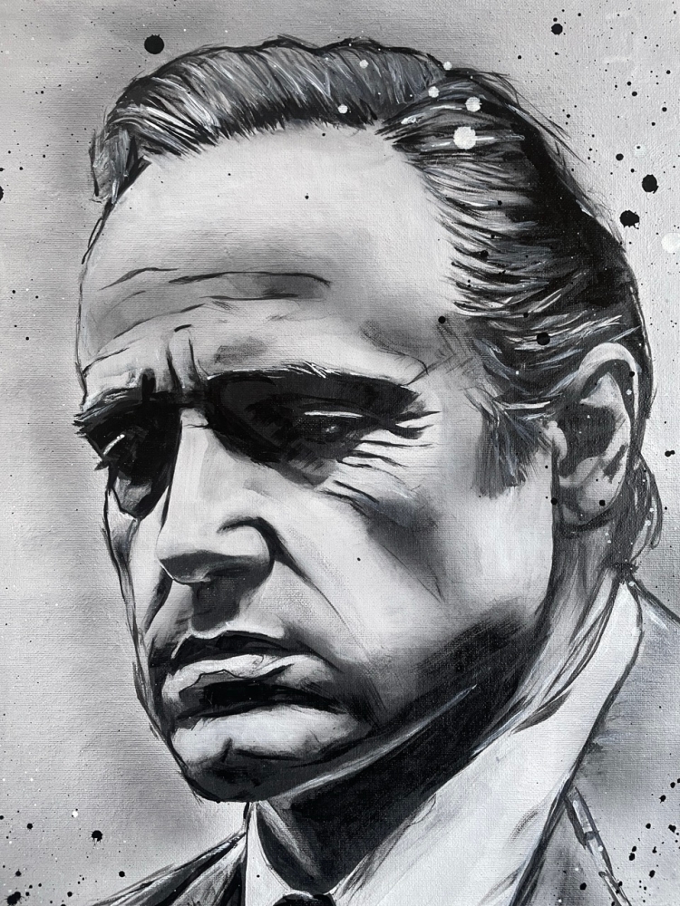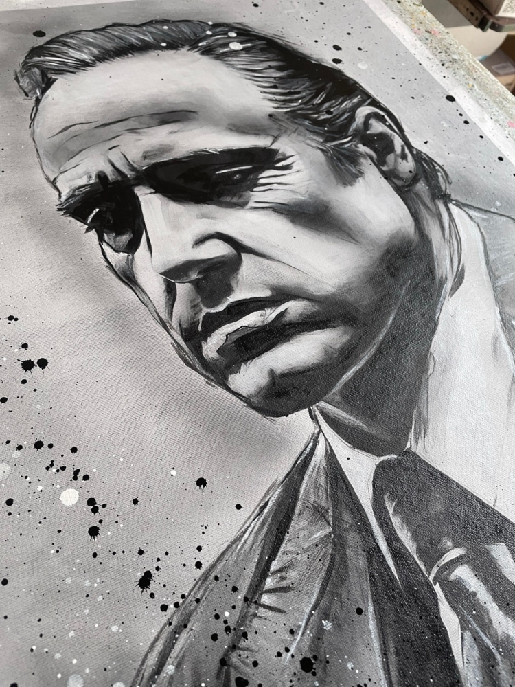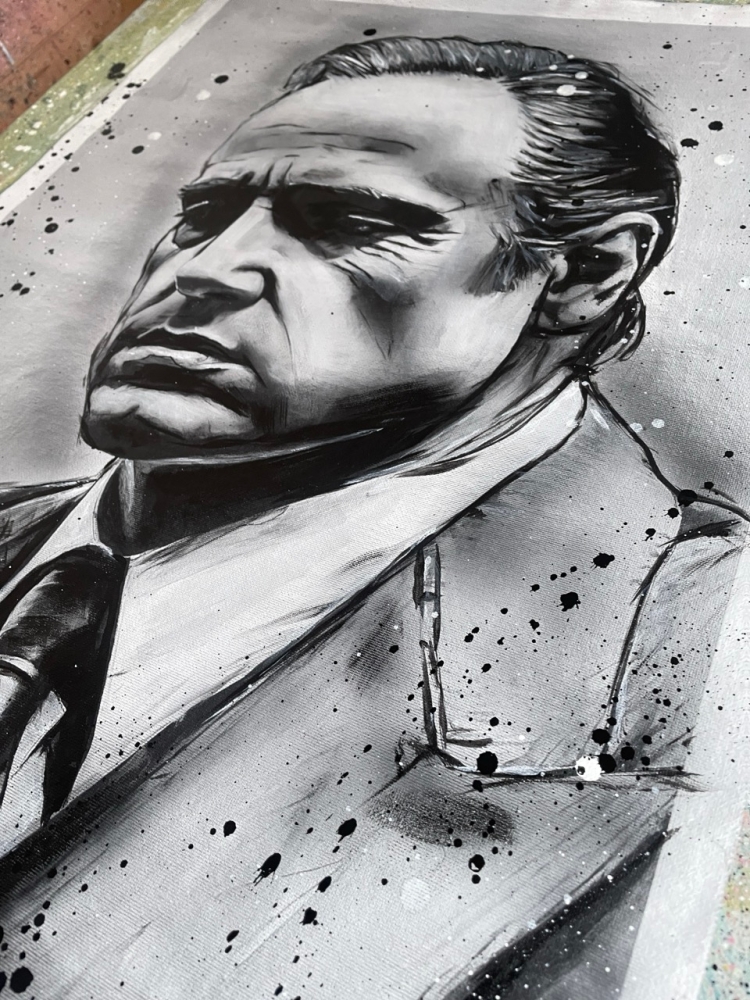 COLLECTOR'S ITEM! "Il Padrino" Introducing an exceptional interpretation of this Noir's piece, this artwork is a mixed media on canvas titled "Il Padrino" This exclusive edition highlights the artist's passion In every stroke, Noir's work reflects an unwavering commitment to the art form. -This is a unique work of art, hand-signed and with a certificate of authenticity, delivered to your door. -Sent rolled in a tube. -This is a Mixed Media Artwork on canvas, so you should expect some flaws, imperfections splatters, small cracks or wrinkles can also happen, and when it does, it's part of the artwork. This is just the nature of the spray on canvas. -Sent rolled in a tube. -Colors may shift due light conditions at the moment of the photo. *do not leave it in the tube Noir, a passionate artist, discovered her deep-seated love for Urban art and Illustration from a tender age. Over the years, Noir's artistic journey has unfurled, expanding the skills into various creative realms, including concept art and digital painting, music, 3d sculpt and traditional painting.