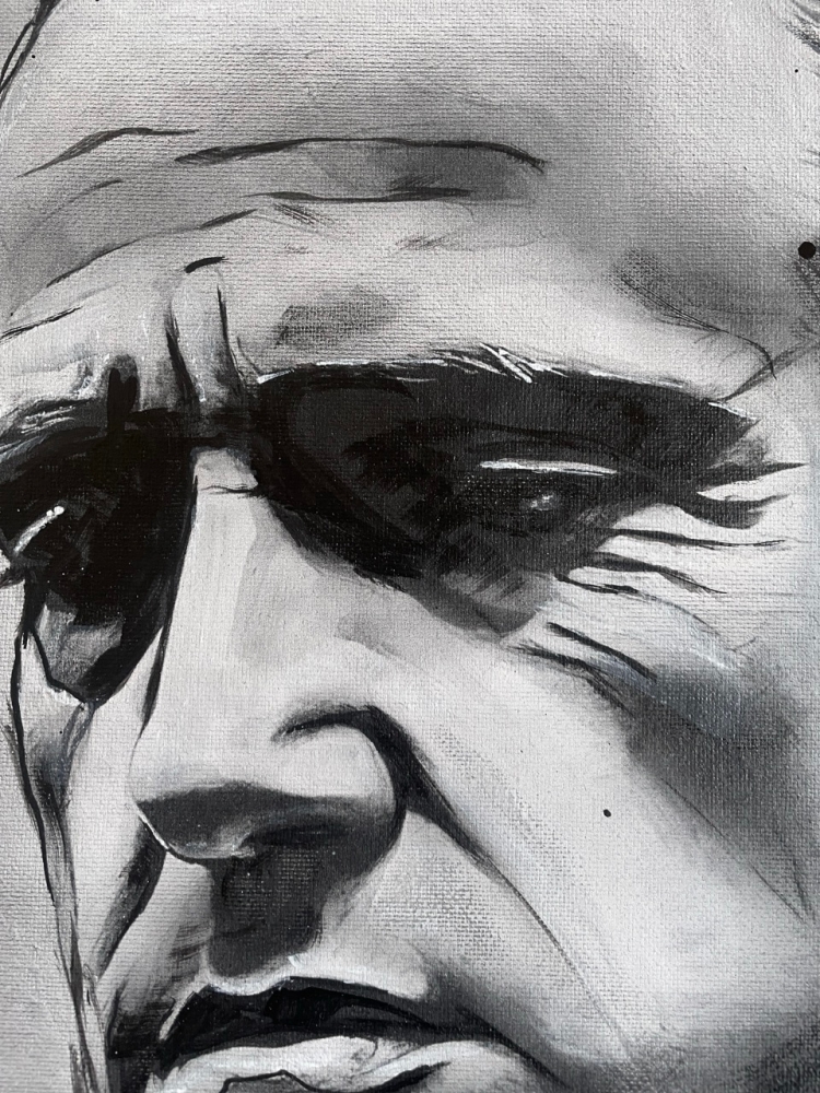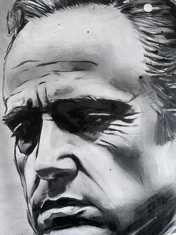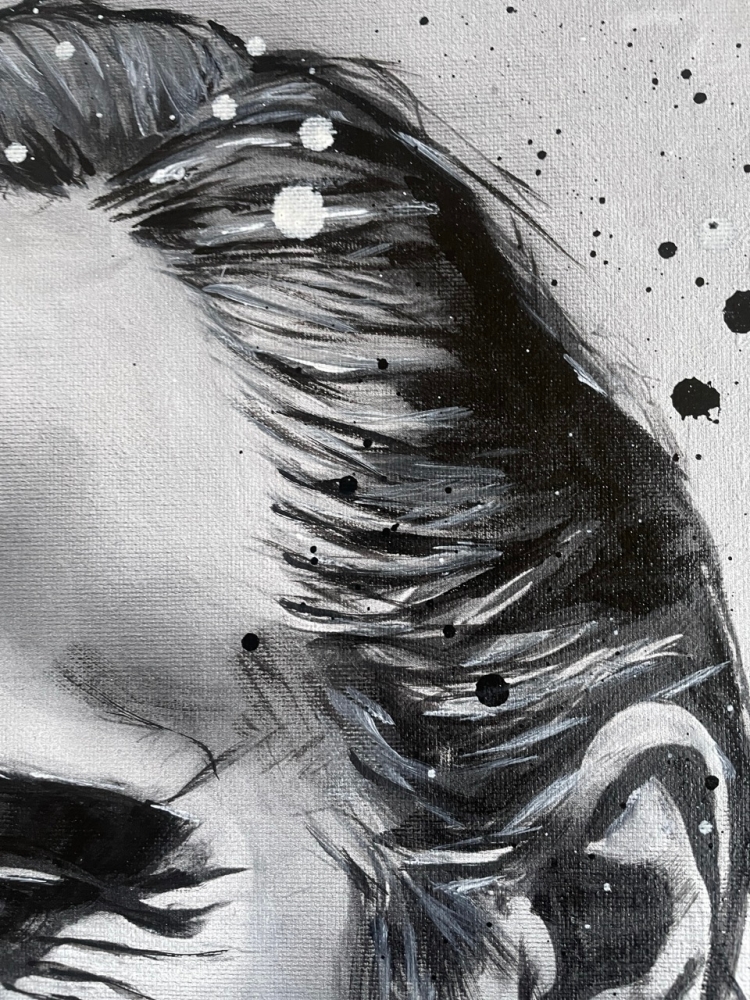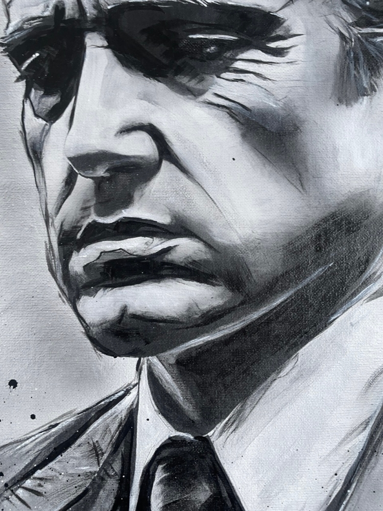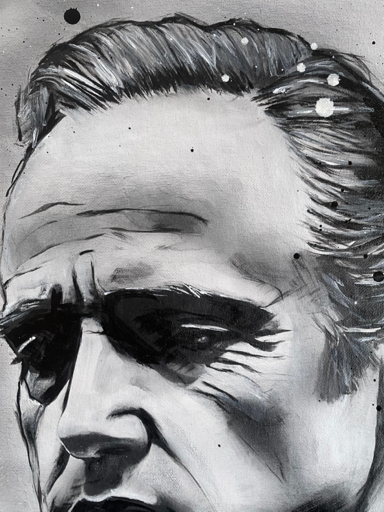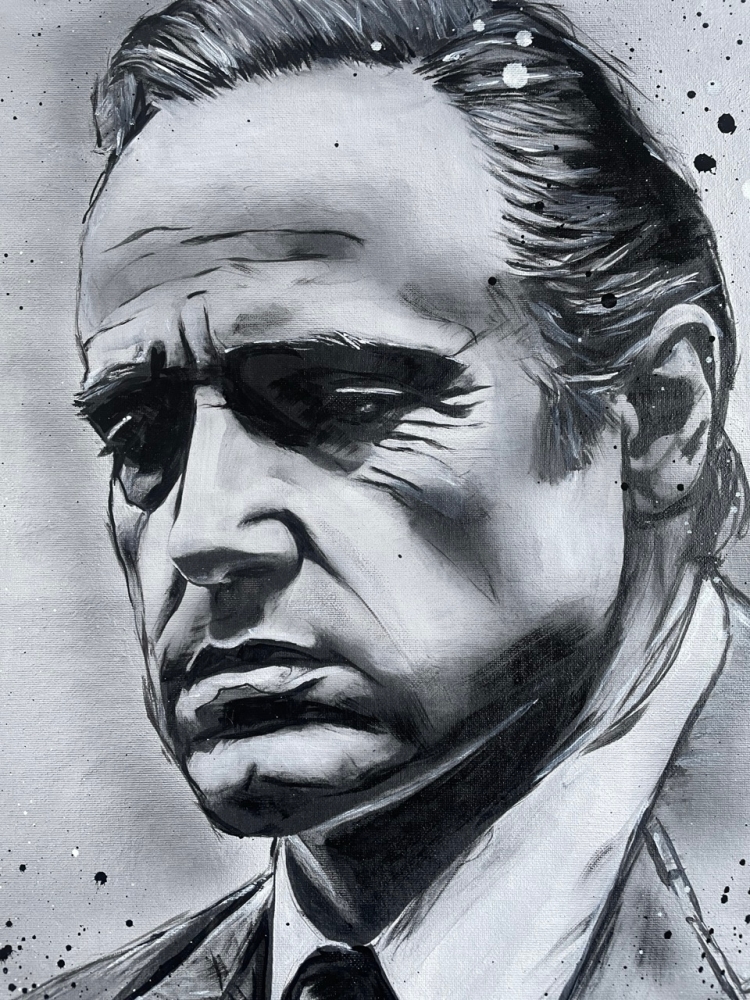 COLLECTOR'S ITEM! "Il Padrino" Introducing an exceptional interpretation of this Noir's piece, this artwork is a mixed media on canvas titled "Il Padrino" This exclusive edition highlights the artist's passion In every stroke, Noir's work reflects an unwavering commitment to the art form. -This is a unique work of art, hand-signed and with a certificate of authenticity, delivered to your door. -Sent rolled in a tube. -This is a Mixed Media Artwork on canvas, so you should expect some flaws, imperfections splatters, small cracks or wrinkles can also happen, and when it does, it's part of the artwork. This is just the nature of the spray on canvas. -Sent rolled in a tube. -Colors may shift due light conditions at the moment of the photo. *do not leave it in the tube Noir, a passionate artist, discovered her deep-seated love for Urban art and Illustration from a tender age. Over the years, Noir's artistic journey has unfurled, expanding the skills into various creative realms, including concept art and digital painting, music, 3d sculpt and traditional painting.