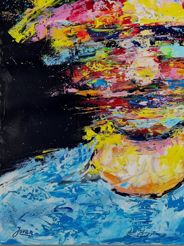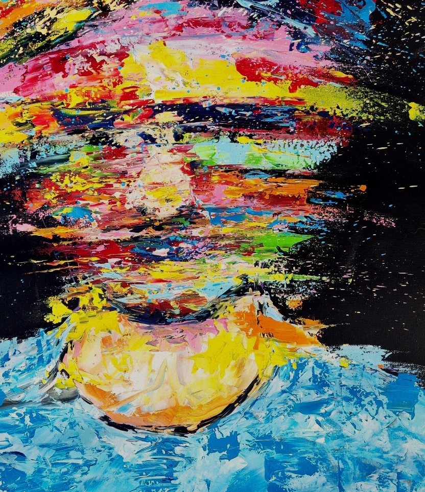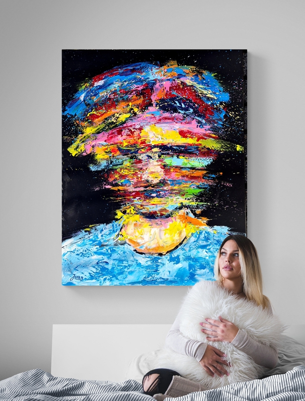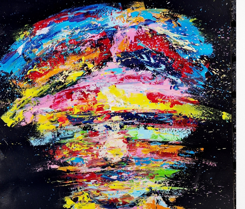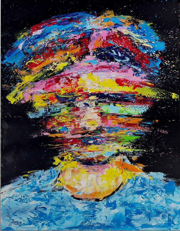 Dikke reliëflagen verf aangebracht met paletmes en op deze schilderij ui serie ''Face's vs G force'' stralen een grote kracht, en trekken de kijker aan om te zoeken naar wat verborgen is. De dynamiek, expressie en vrijheid van de artistieke expressie van de kunstenaar zijn duidelijk zichtbaar. Originele abstract expressionistische compositie (Action painting) van Nederlandse professionele hedendaagse kunstenaar Jovan Srijemac (1962). Verf is expressief en met een veel dynamiek op doek aangebracht . Gelakt en met certificaat van echtheid en klaar voor ophangen. Jovan Srijemac (1962) is een professionele kunstenaar gevestigd in Nederland die zijn schilderijen zowel nationaal als internationaal heeft geëxposeerd. Als professioneel kunstenaar sinds de jaren tachtig heeft zijn artistieke expressie in de loop der jaren verschillende vormen aangenomen. Hij omschrijft zijn stijl als een onbewuste, vaak chaotische en explosieve aanbrenging van verf op het doek, verborgen in ongeplande figuren, objecten en abstracte composities. Jovans levendige composities worden vaak gemaakt met een paletmes, maar zijn werken in Pop/Street Art-stijl gebruiken ook spuitverf, acrylstiften of pastelkrijt. Zijn werk wordt over de hele wereld verkocht aan particulieren, kunstverzamelaars en bedrijven.