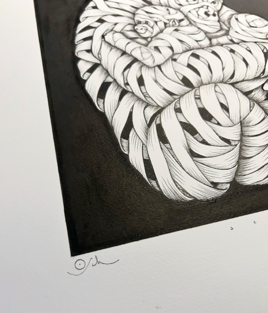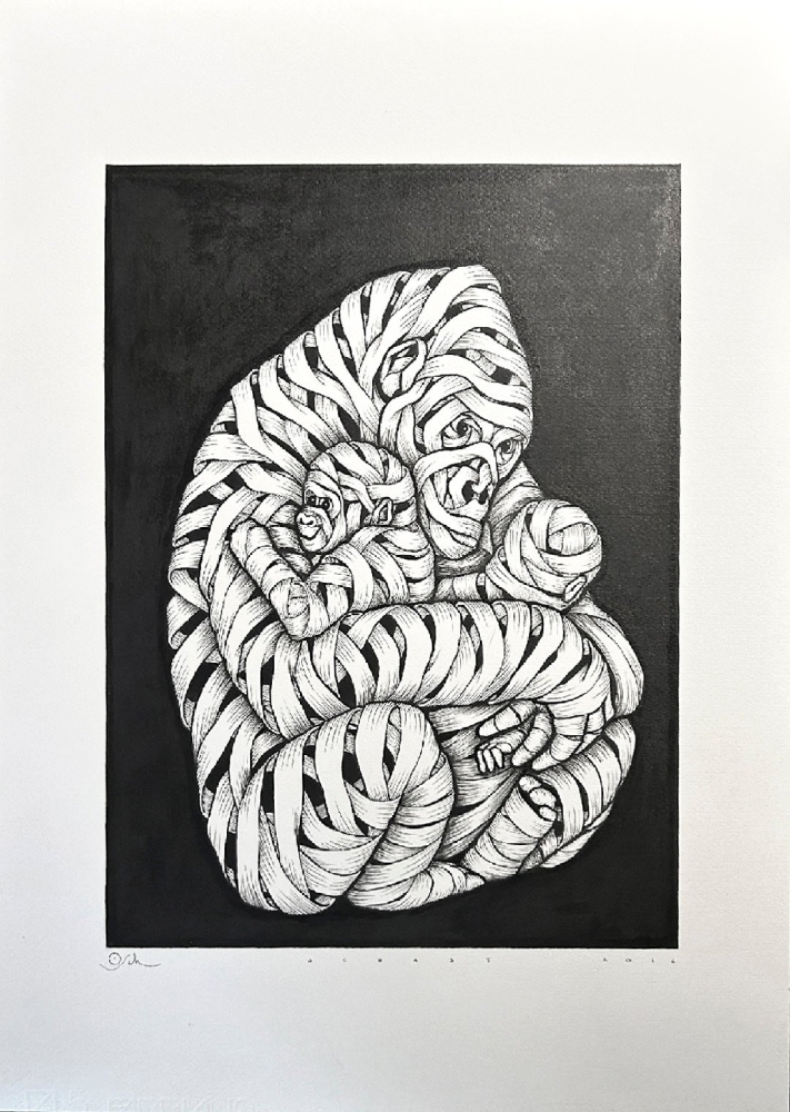 Original ink on paper from acclaimed artist Otto Schade. Title: Gorilla Female Size: 59,4 x 42 cm. Medium: Pen, ink and pencil drawing on 350 gsm Fabriano textured paper Edition: Original Unique Signed: hand signed Year: 2016 First owner. Bought directly from the artist. Stored flat and in perfect condition. Will be sent securely packed and with full insurance