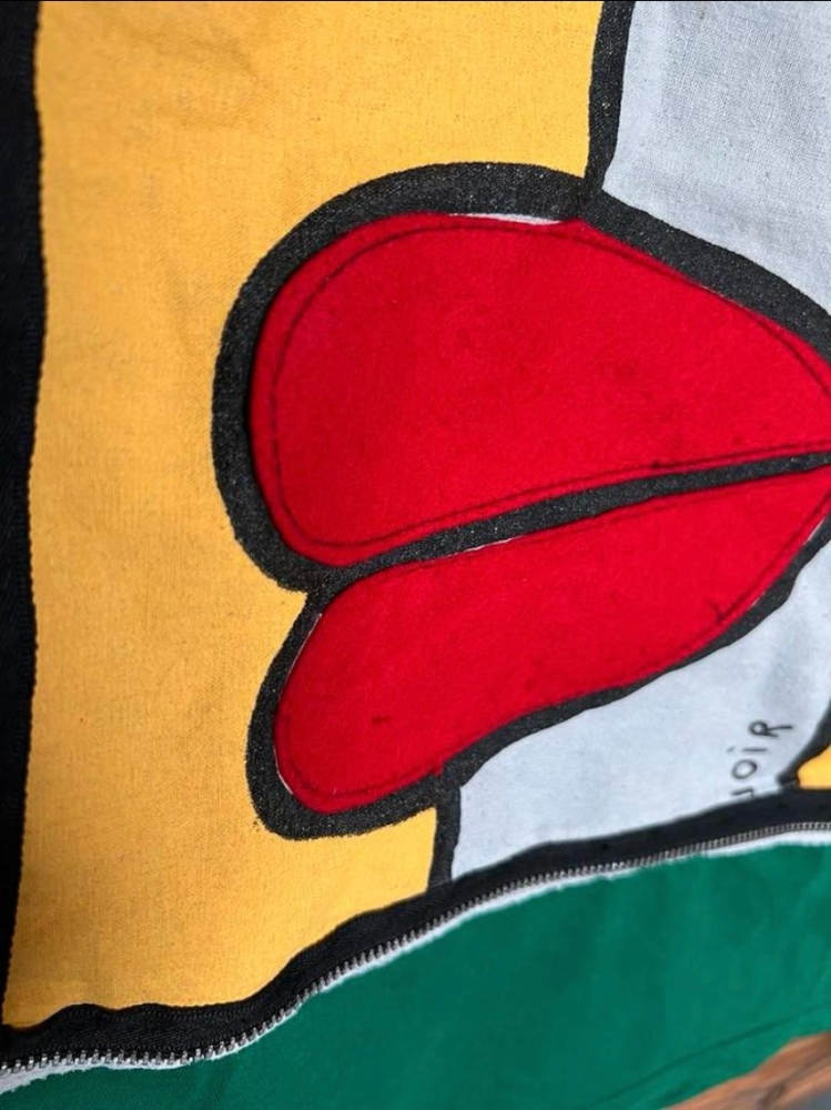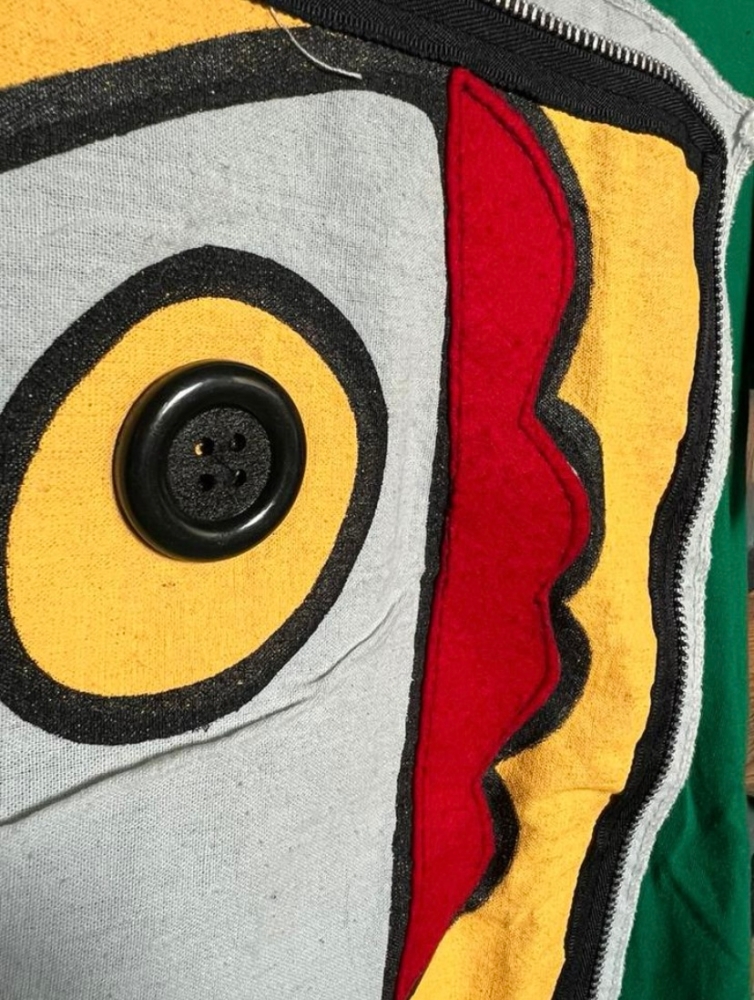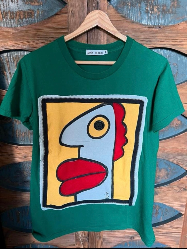 T-shirt gemaakt door Thierry Noir. Het werk is gemaakt rond 2010 in Berlijn. Het is een uniek stuk gemaakt in maat M. De items zijn allemaal op het shirt gestikt. Waarschijnlijk is dit een prototype. Thierry Noir is een kunstenaar die bij de grote veilinhuizen steeds populairder wordt.