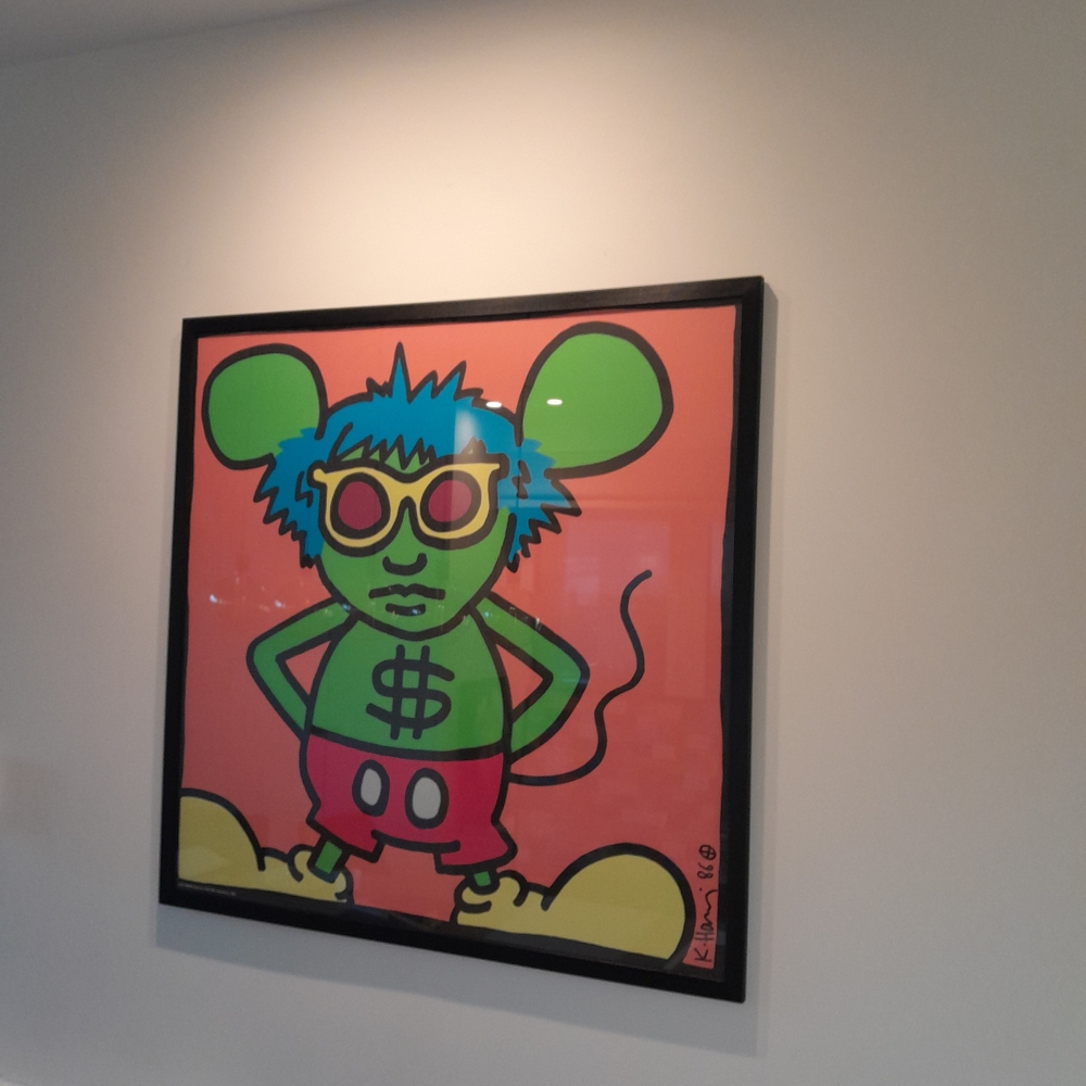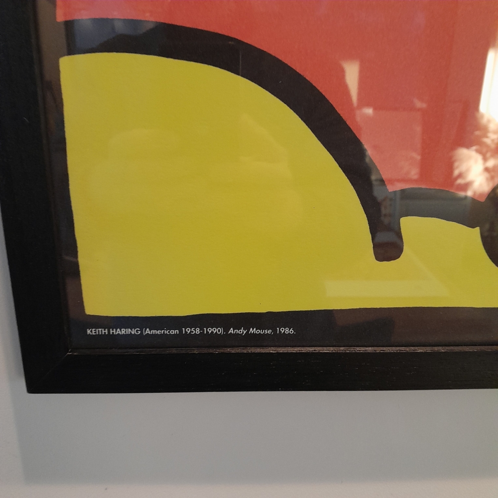 Andy Mouse, known work after Keit Haring. Excellent condition, very bright colours. Professionally framed in a black frame. Signed in the print. Printed on very thick paper. Framed 94x94xm, work 90x90. Please note that the Keith Haring Foundation has not issued a Certificate of Authenticity (COA) for many years. Works by Keith Haring that cannot be found in one of Haring's catalogues, are therefore always marked as "after" or "after" at ArtAuction.online because we cannot certify them.