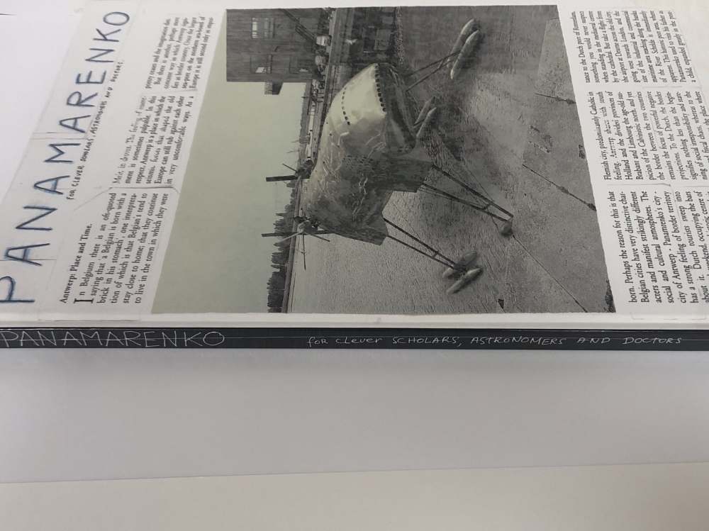Oude (en betere) druk in nieuwstaat (ongeopend, sealed) van for clever scholars, astronomers and doctors. In dit schitterend boek, geschreven en ontworpen door visionair, utopist en romanticus Panamarenko bewijst hij dat kunst bedoeld is om uit te drukken wat de rede niet kan vatten. Zeldzaam in deze perfecte staat. Large formaat met zeer mooie pagina grote en typerende illustraties. Volgende werken komen aan bod: Umbilly, North Sea Pedalo, Panama Submarine, Pepto Bismos "Japanese Packs", Paradox, Bernouilli 1 & 2, Toymodel of Space, Bing of the Ferro Lusto, Aeromodeller, Catapult Max, Archaeopteryx, Jungle Mountain Machine K2 & K3, Bangalore, Monocedo, Raven, Scotch Gambit e.a.
