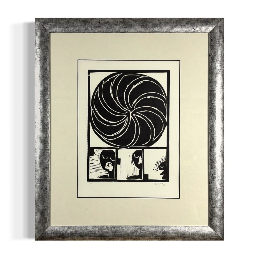 Woodcut entitled Le Spirale II by Belgian artist Pierre Alechinsky. Signed and numbered by the artist. Professionally framed. 100x83cm. Technology: woodcut. Year: 1970.