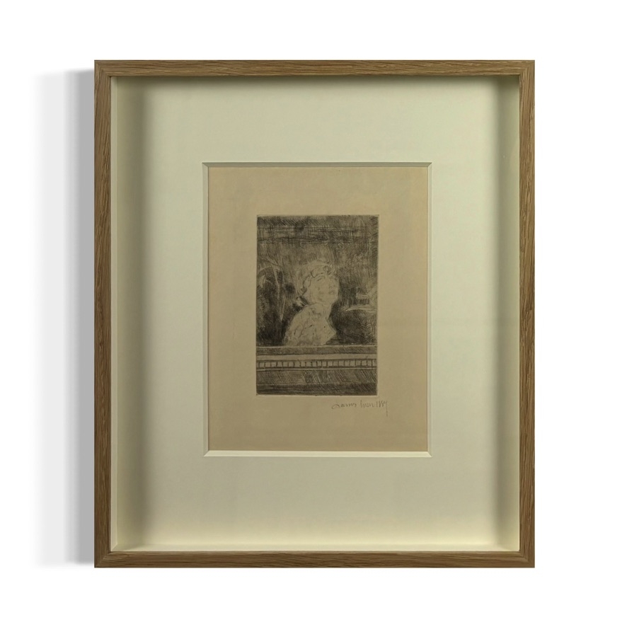 Ets entitled 'Bust' by James Ensor. Signed and dated by the artist. Title: Bust Technology: ETS Framework: Professionally framed Dimensions: 36x31cm. Signed and dated by James Ensor.