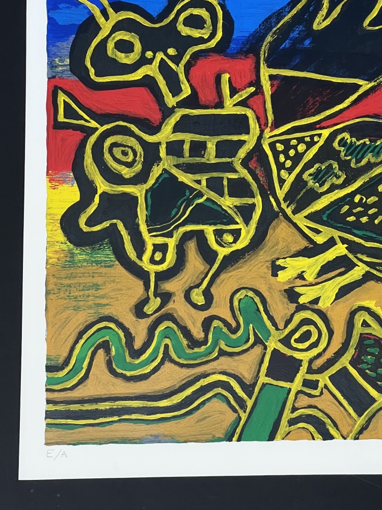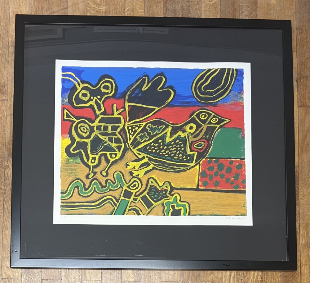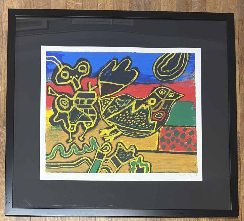 Beautiful work inspired by Corneille's travels Lithograph signed and dated in graphite at the bottom by the painter. Dimensions in the passe partout: 55 x 65 cm. Overall dimensions: 85 x 92 cm. On request, it is possible to send the work unframed as the frame shows wear, scratches and roughness at the bottom. In this case, we will refund part of the shipping costs. Secure delivery in a box by UPS. Guillaume Corneille retrospective in Belgium in 2024!