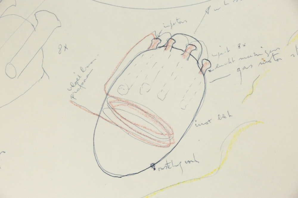 What is special about the work is that it contains a writing error. The text mentioned on the work "Propane gas word" must be written with dt. This is what characterizes Panamarenko.