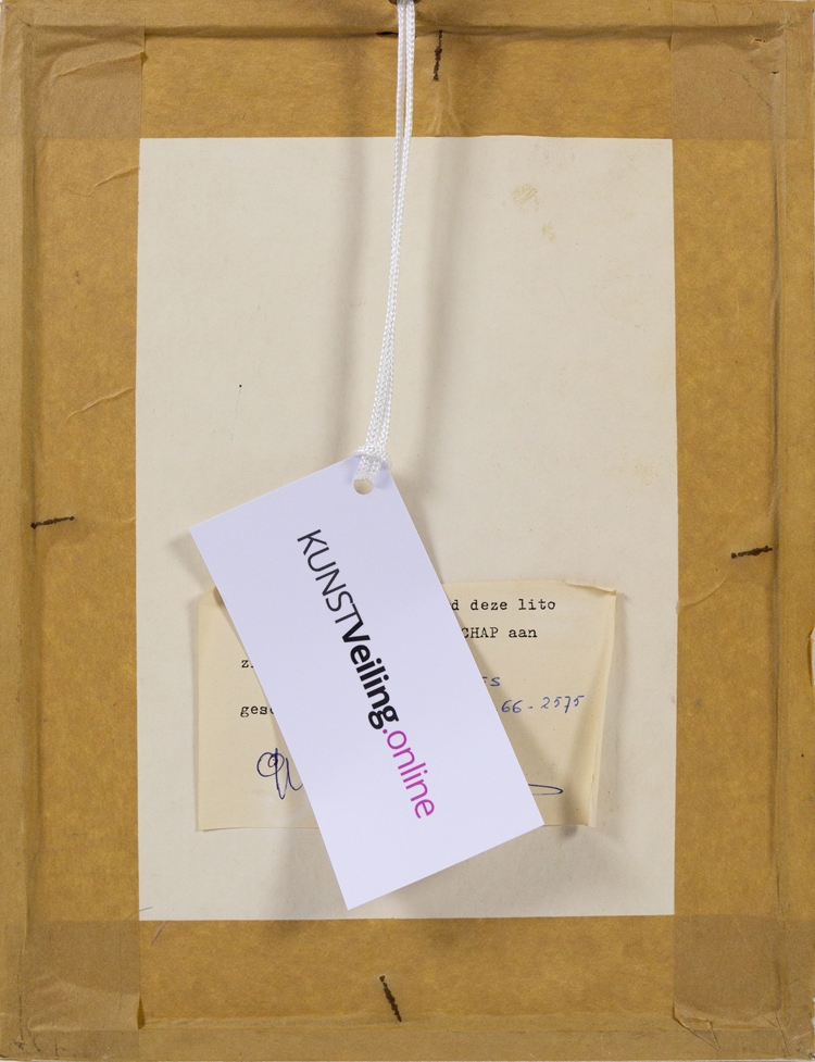 Litho is ingelijst en in goede staat. Enkele minpuntjes: lichte vlekken in de hoeken van het papier. Via een nieuwe inlijsting met passe-partout kunnen deze worden weggewerkt.