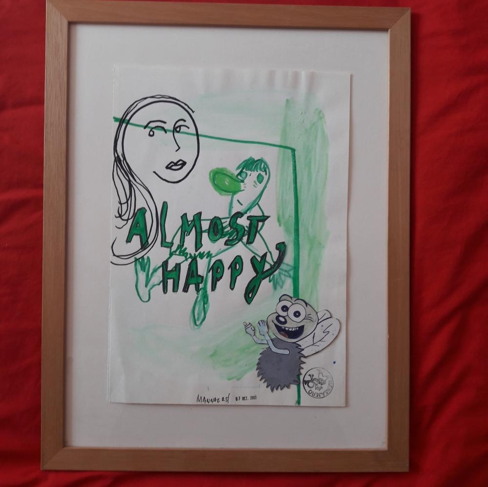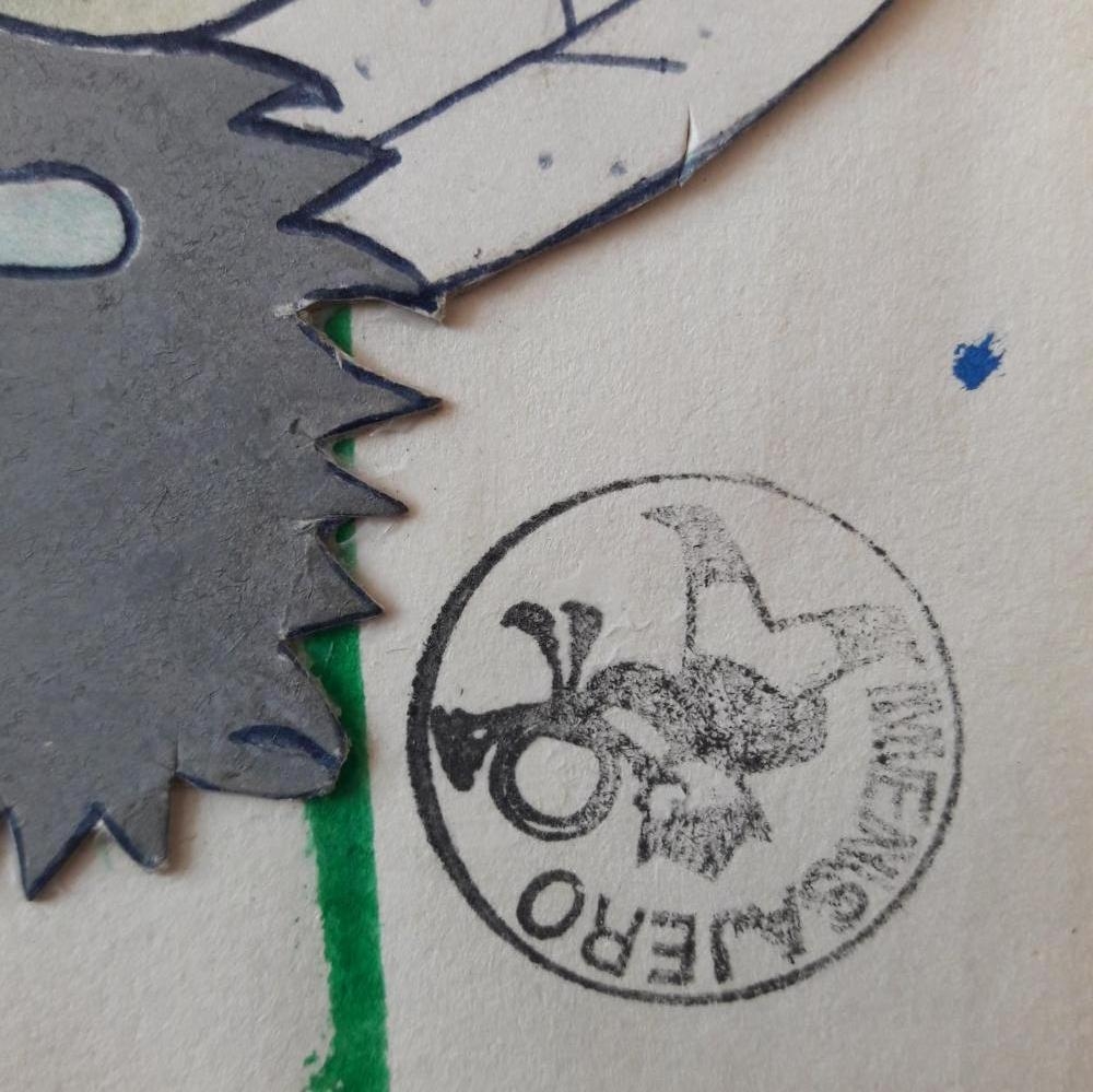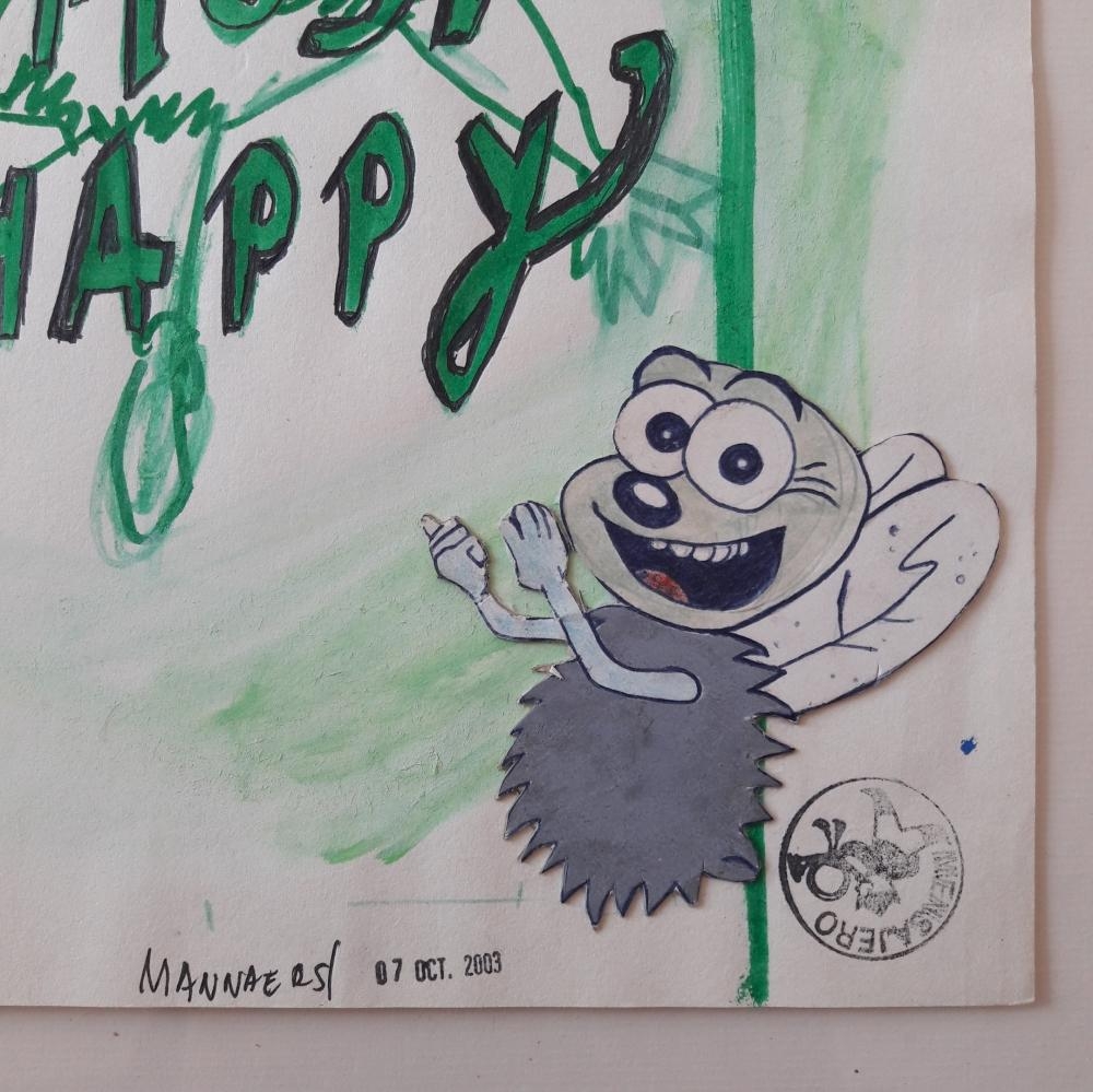 Original drawing on paper with chalk, watercolor, marker and collage by Werner Mannaers .