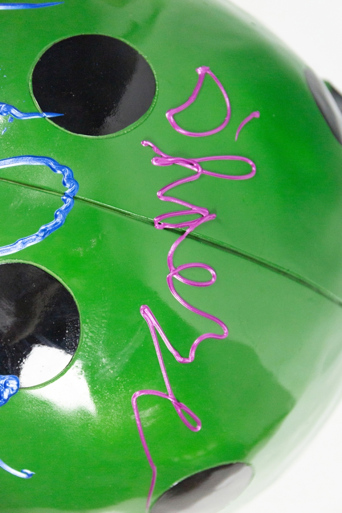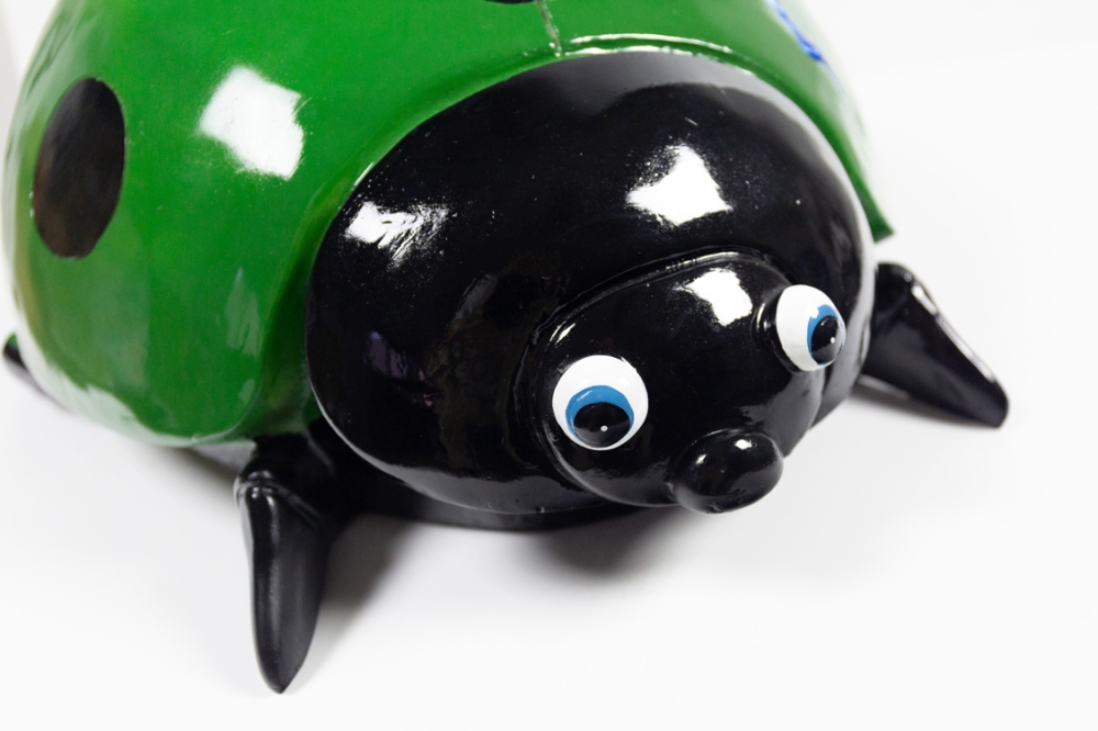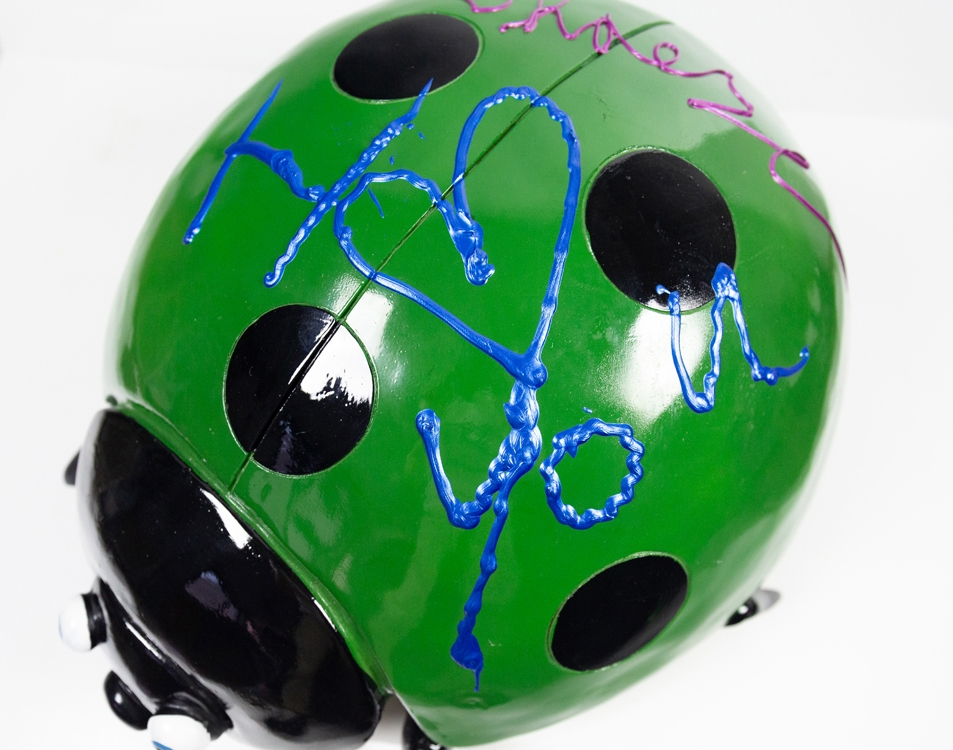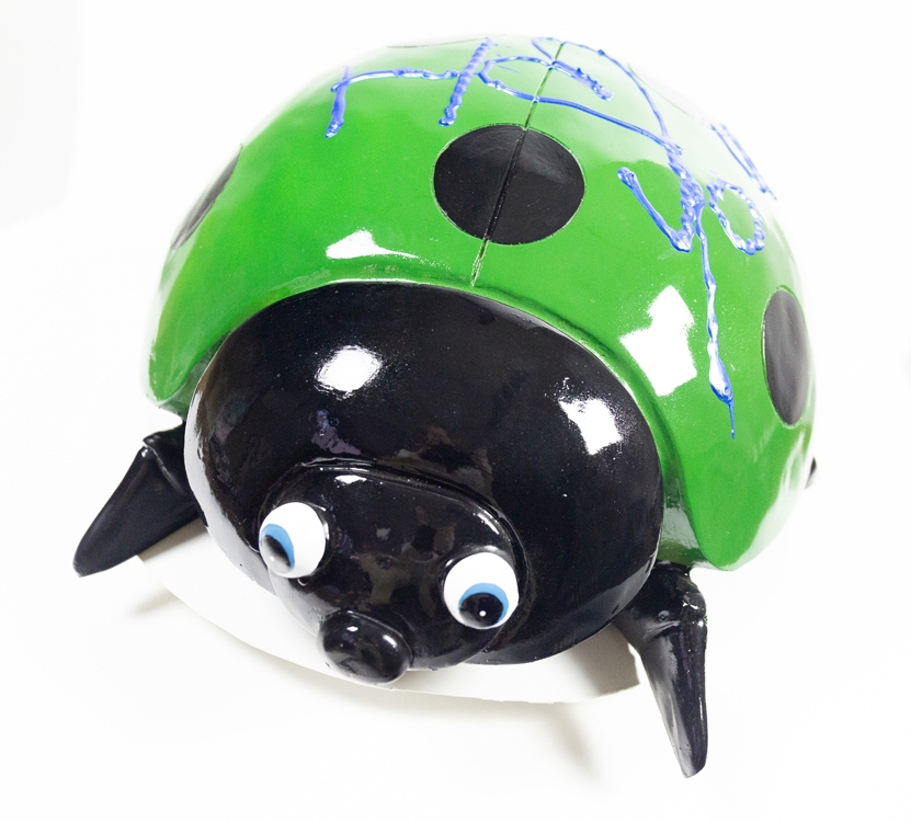 Sculpture from synthetic resin by Hannes D'Haese in the shape of a ladybug. The work is signed by hand in acrylic paint and has the inscription "H loves you".