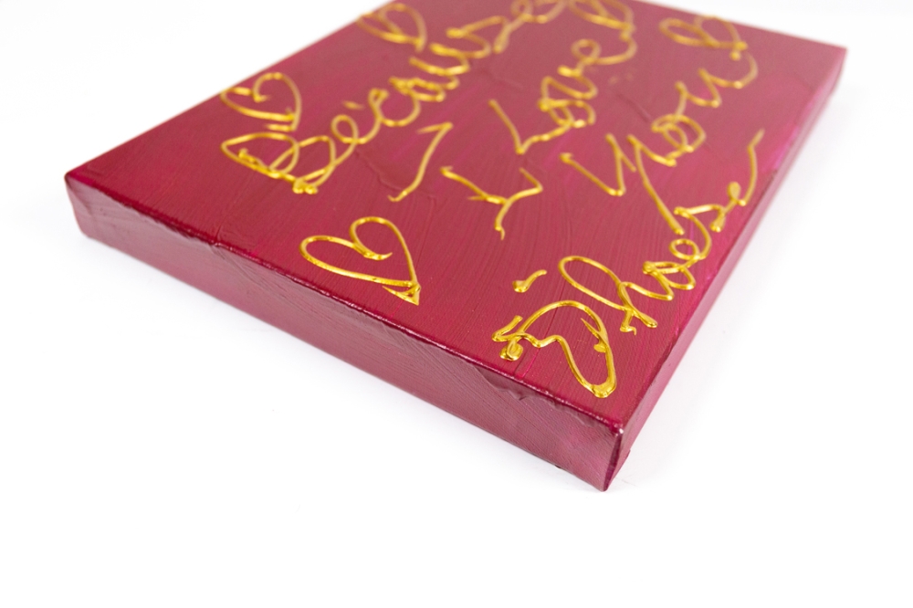 Schilderij met acrylverf van Hannes D'Haese, met als opschrift "Because i love you". Het werk is met de hand gesigneerd.