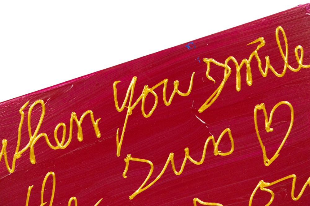 Painting with acrylic paint by Hannes D'Haese, with the inscription "When you smile the sun comes out". The work is signed by hand.
