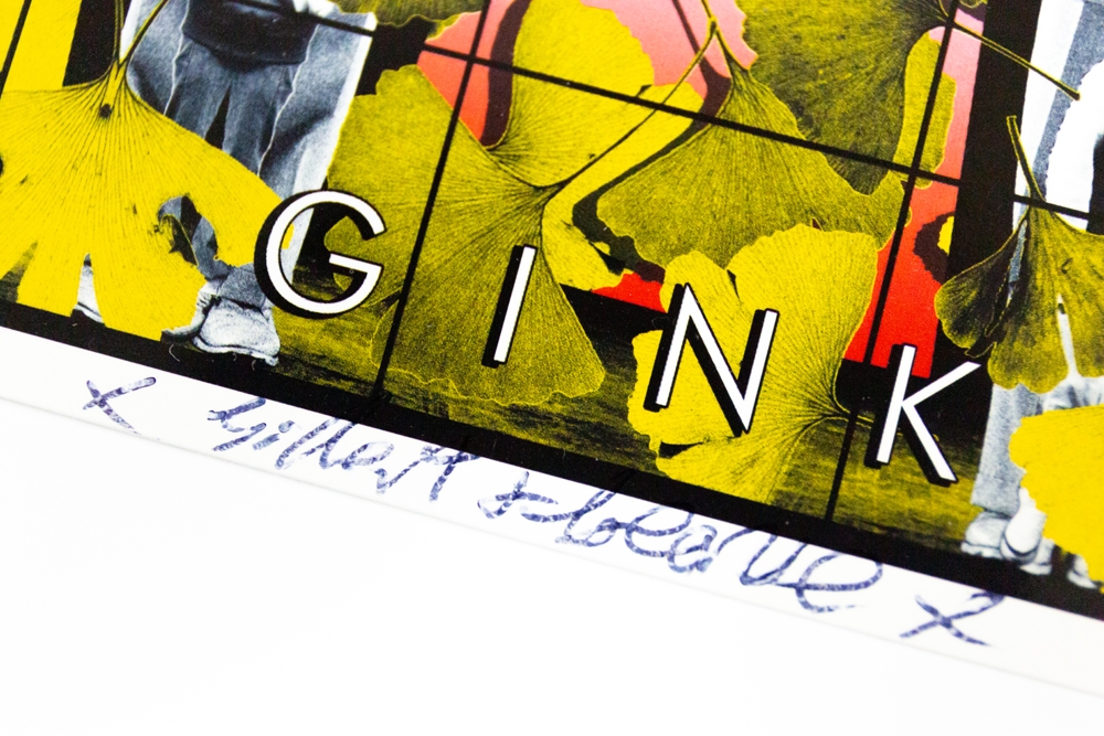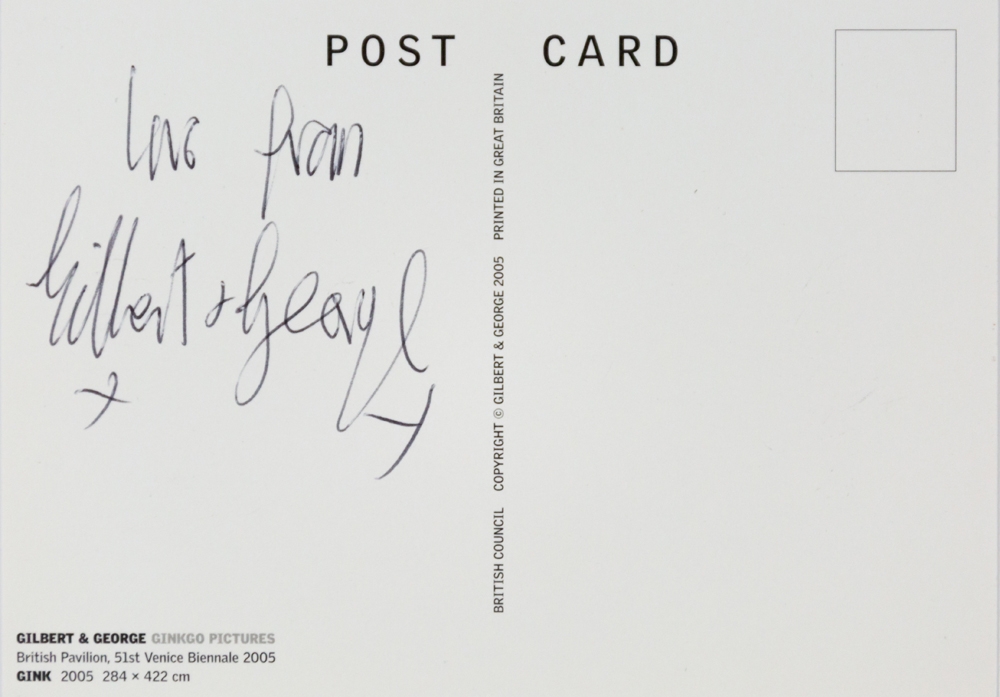 Hand-signed postcard from Gilbert & George , featuring the work "Gink".