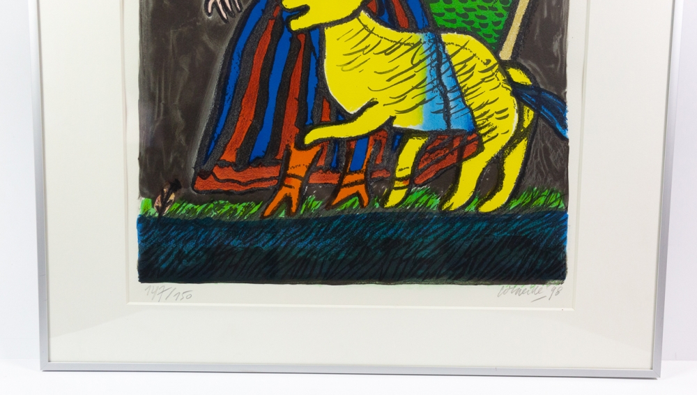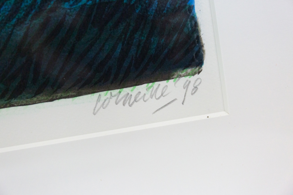 Silkscreen by Guillaume Corneille from 1998. The work is signed by hand and numbered 147/150. The work is in excellent condition and framed in a sober aluminum frame. Comes with a certificate of art-gallery.be .