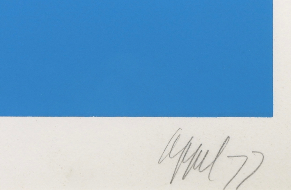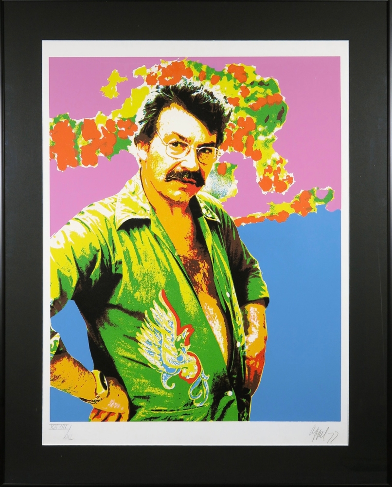 Grote zeefdruk, getiteld Monday, uit de serie Seven Summer Days. De befaamde portfolio "Seven Summer Days” bevat 14 werken. Karel Appel realiseerde voor elke dag van de week twee werken, waarvan telkens een vrij persoonlijk werk (veelal een zelfportret) genoemd naar de dag, en een werk van een hoofd/figuur in 7 verschillende kleuren/uitvoeringen. Literatuur: Karel Appel, Henk van der Vet, Christian Dotremont, van Spijk uitgeverij, 1991.