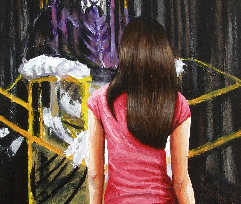 Gerard Boersma is known for his paintings of people in museums looking at famous paintings. This work of 40 x 30 cm shows a woman looking at a painting by Keith Haring. The work dates from 2021 and is made with acrylic on masonite. Signed on the back and comes with a label of the artist as well as a Certificate Of Authenticity. About the artist Gerard Boersma is an international recognized artist for over 20 years well known for his own style of realism painting. His art is in museums, galleries and private collections worldwide (6 continents, 30 countries). In 2018 he showed his works alongside Warhol, Haring, Banksy and others at a group show at his art dealer in France. He lives and works in Leeuwarden, the Netherlands.